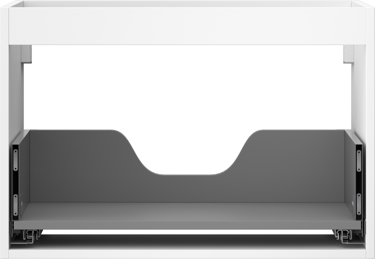La découpe dans le tiroir est conçue de manière à accueillir le siphon, qui est nécessaire dans les installations de lavabo. Ainsi, le meuble peut être installé de manière pleinement fonctionnelle, sans devoir renoncer à l'espace du tiroir au profit de l'installation.