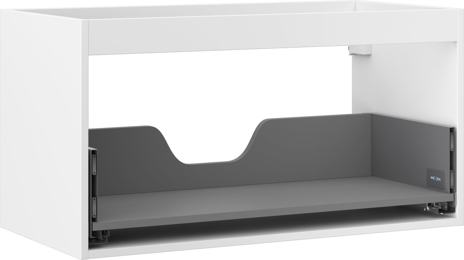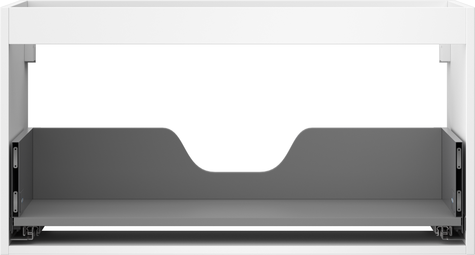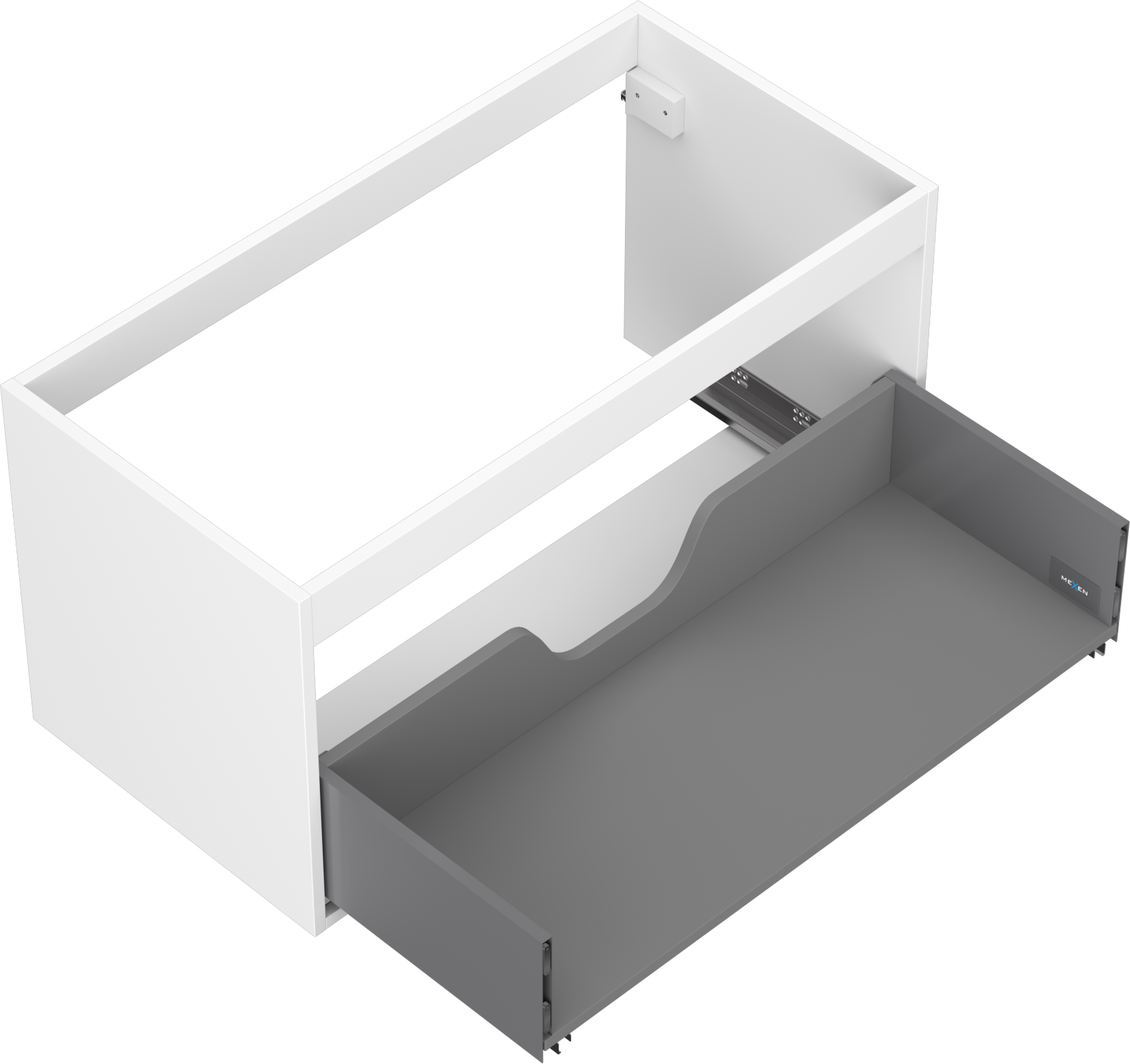 La découpe dans le tiroir est conçue de manière à accueillir le siphon, qui est nécessaire dans les installations de lavabo. Ainsi, le meuble peut être installé de manière pleinement fonctionnelle, sans devoir renoncer à l'espace du tiroir au profit de l'installation.