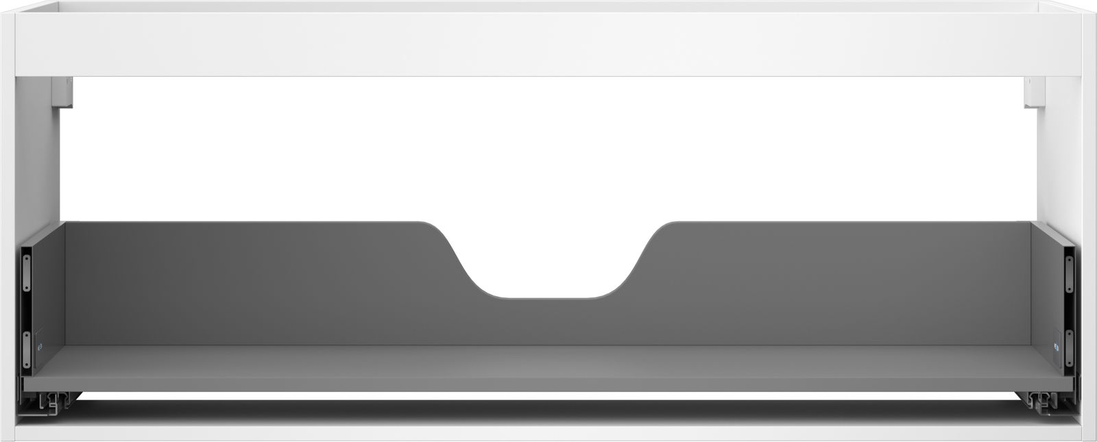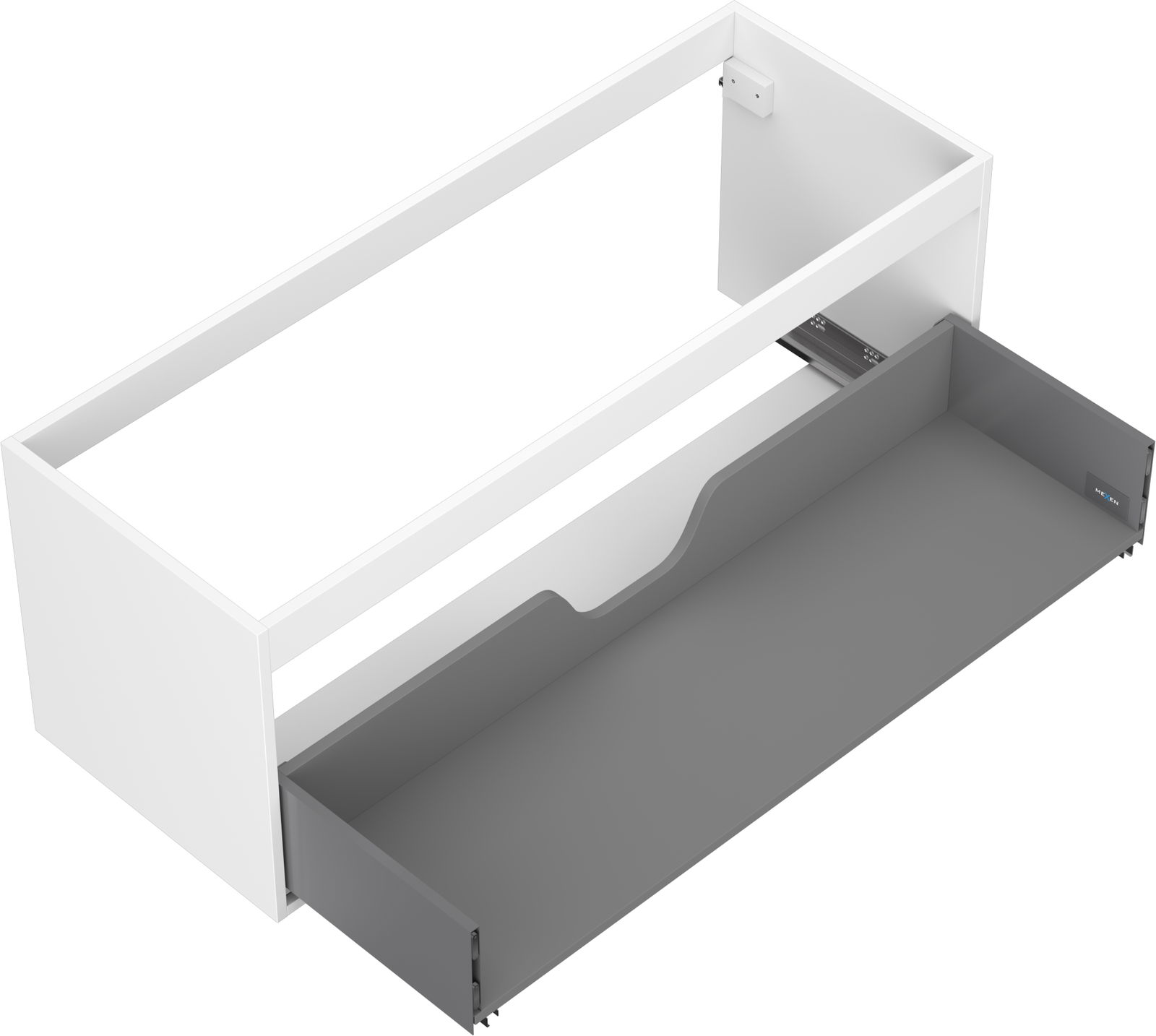 La découpe dans le tiroir est conçue de manière à accueillir le siphon, qui est nécessaire dans les installations de lavabo. Ainsi, le meuble peut être installé de manière pleinement fonctionnelle, sans devoir renoncer à l'espace du tiroir au profit de l'installation.