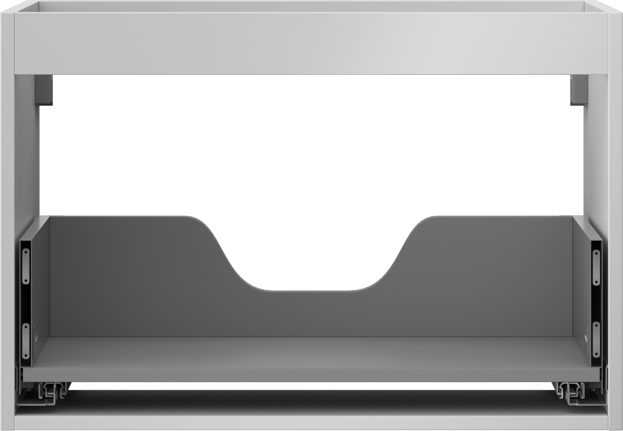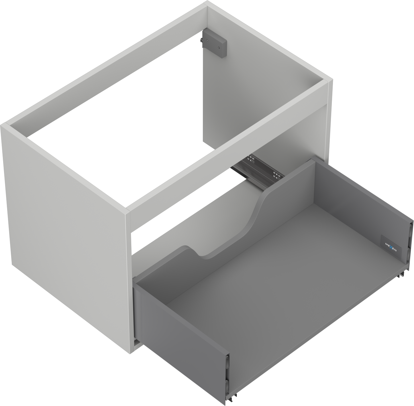 La découpe dans le tiroir est conçue de manière à accueillir le siphon, qui est nécessaire dans les installations de lavabo. Ainsi, le meuble peut être installé de manière pleinement fonctionnelle, sans devoir renoncer à l'espace du tiroir au profit de l'installation.