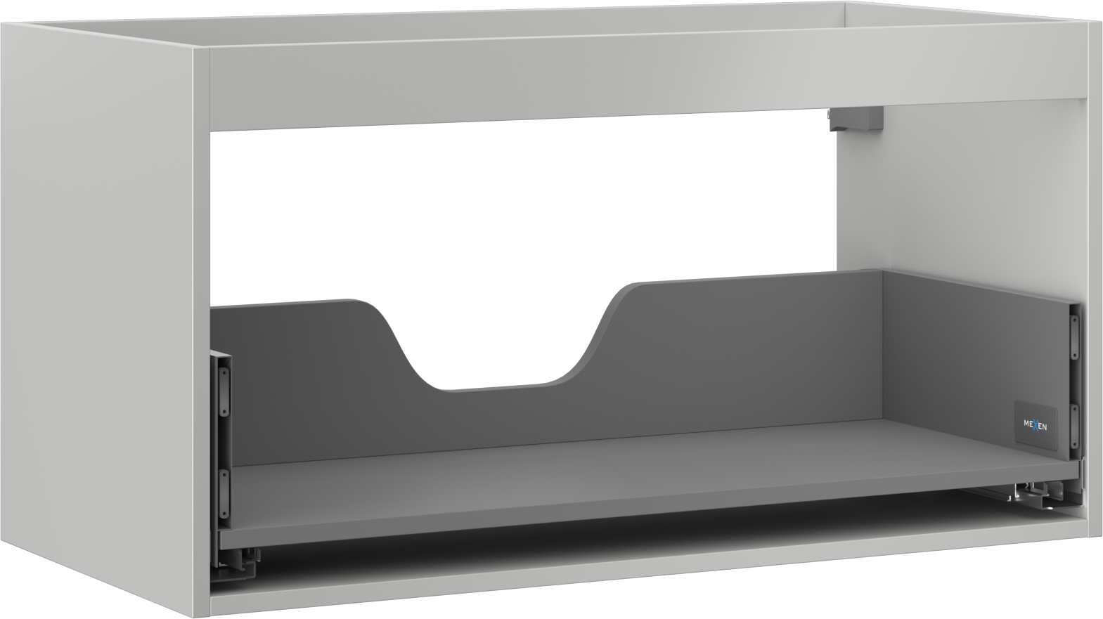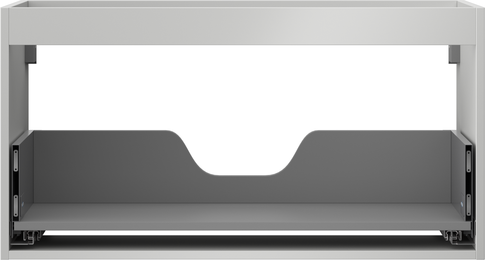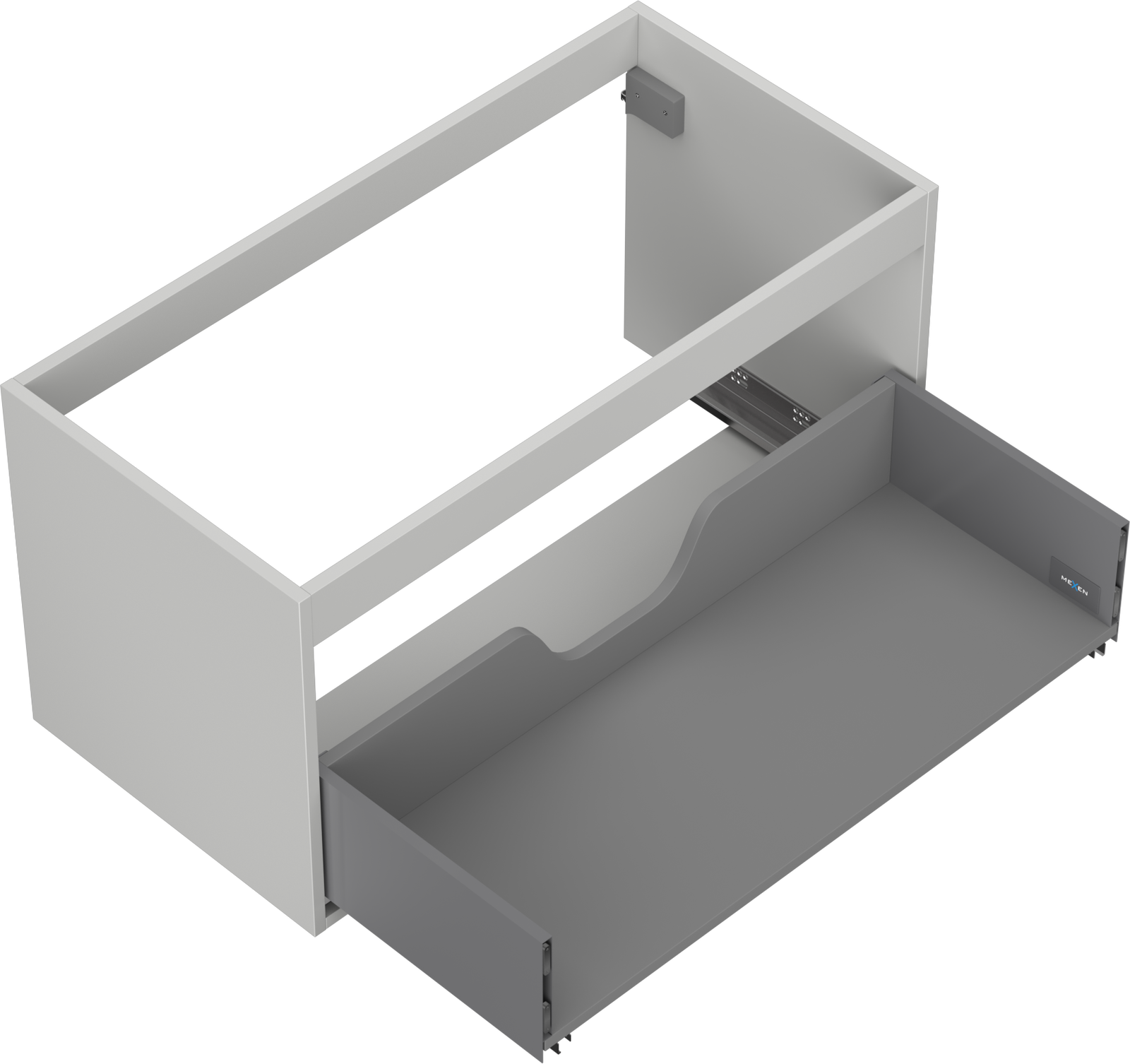 La découpe dans le tiroir est conçue de manière à accueillir le siphon, qui est nécessaire dans les installations de lavabo. Ainsi, le meuble peut être installé de manière pleinement fonctionnelle, sans devoir renoncer à l'espace du tiroir au profit de l'installation.