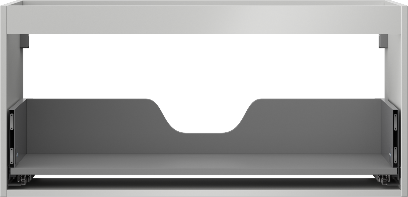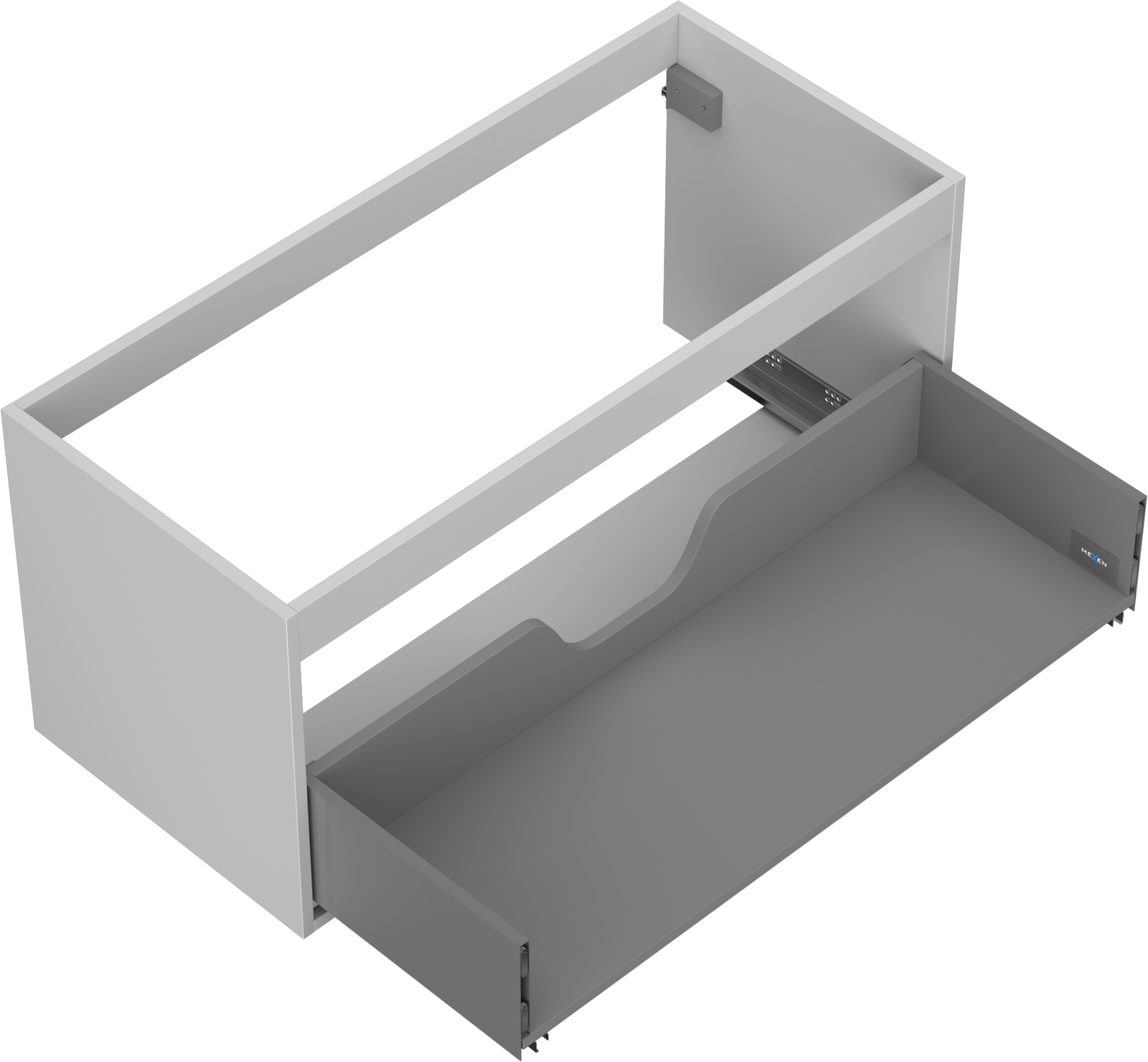 La découpe dans le tiroir est conçue de manière à accueillir le siphon, qui est nécessaire dans les installations de lavabo. Ainsi, le meuble peut être installé de manière pleinement fonctionnelle, sans devoir renoncer à l'espace du tiroir au profit de l'installation.