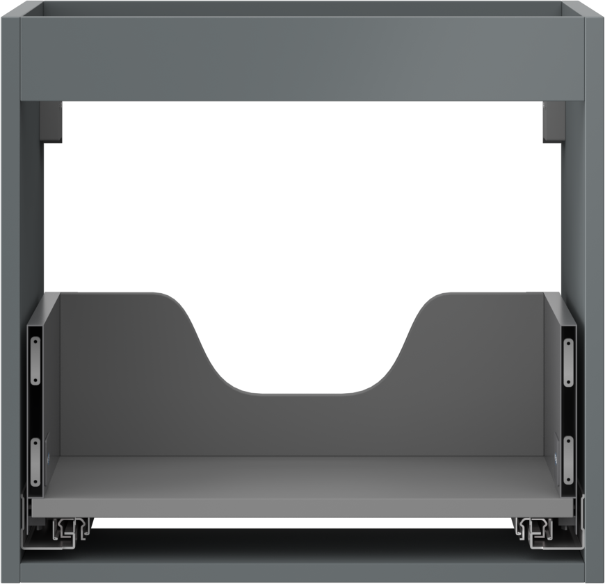 La découpe dans le tiroir est conçue de manière à accueillir le siphon, qui est nécessaire dans les installations de lavabo. Ainsi, le meuble peut être installé de manière pleinement fonctionnelle, sans devoir renoncer à l'espace du tiroir au profit de l'installation.