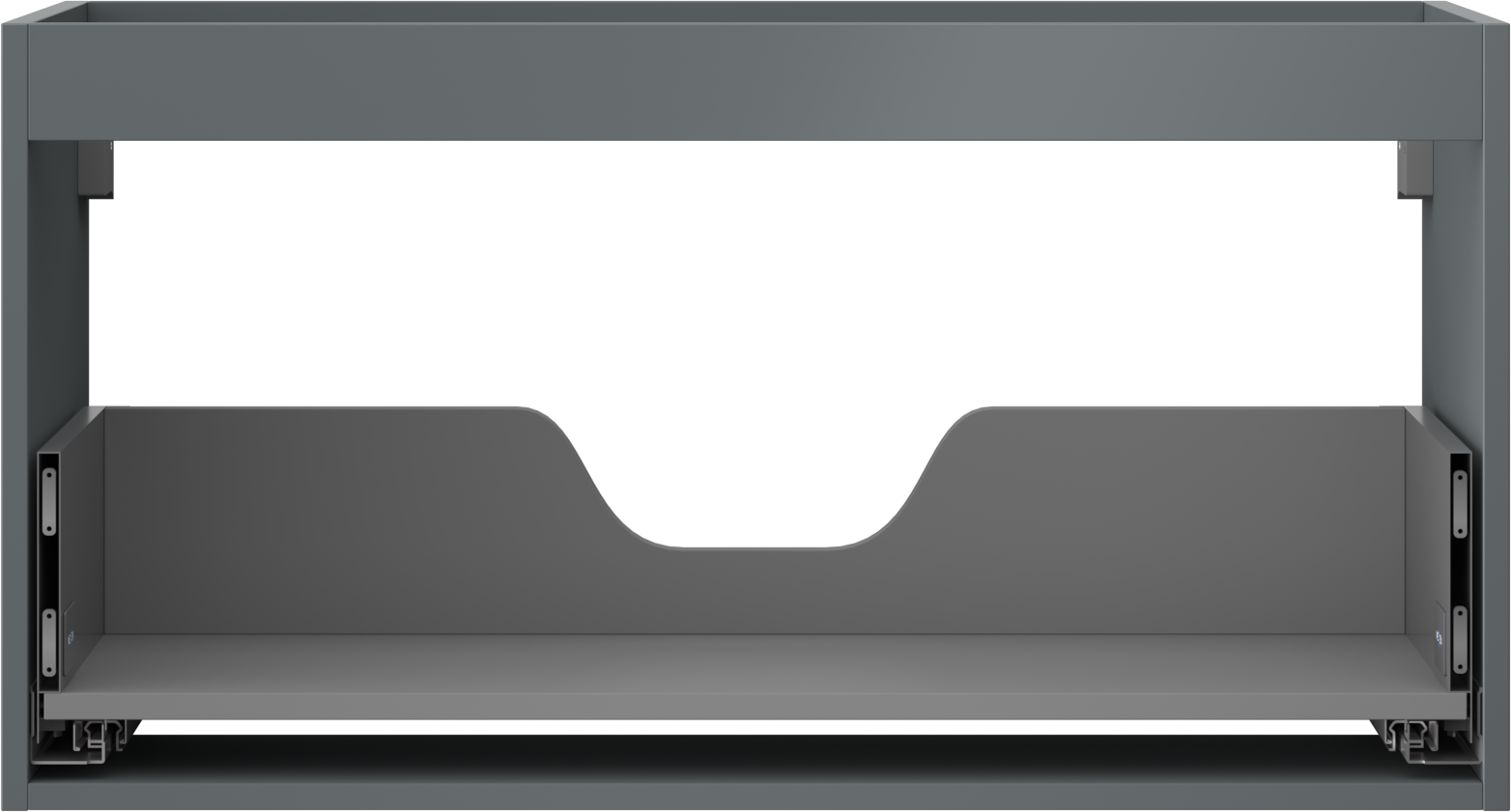 La découpe dans le tiroir est conçue de manière à accueillir le siphon, qui est nécessaire dans les installations de lavabo. Ainsi, le meuble peut être installé de manière pleinement fonctionnelle, sans devoir renoncer à l'espace du tiroir au profit de l'installation.