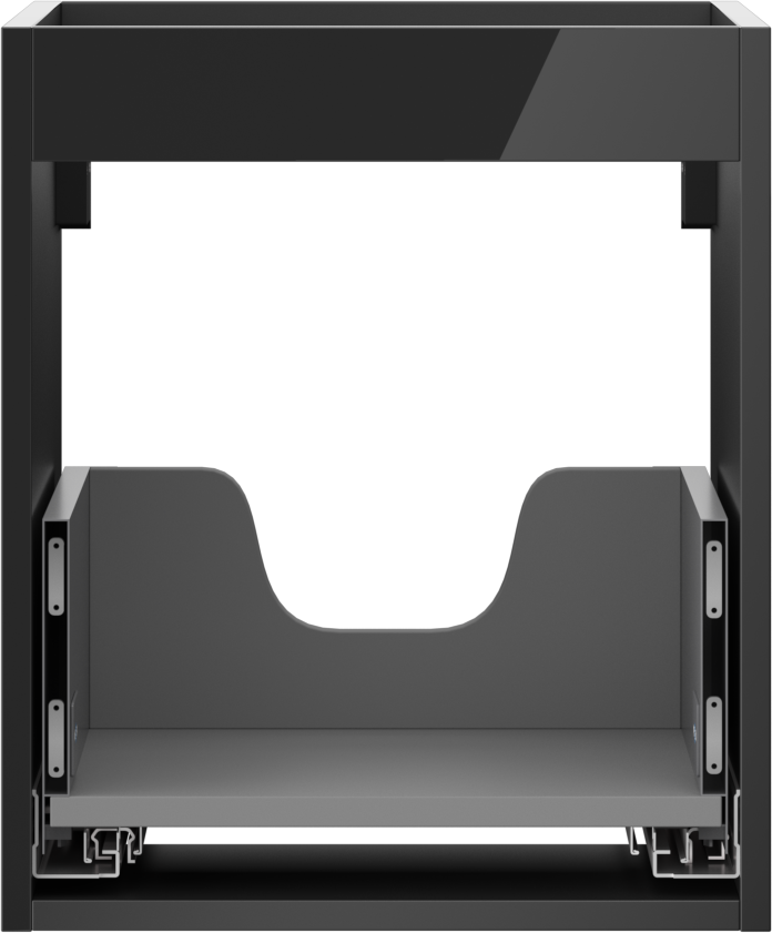 La découpe dans le tiroir est conçue de manière à accueillir le siphon, qui est nécessaire dans les installations de lavabo. Ainsi, le meuble peut être installé de manière pleinement fonctionnelle, sans devoir renoncer à l'espace du tiroir au profit de l'installation.