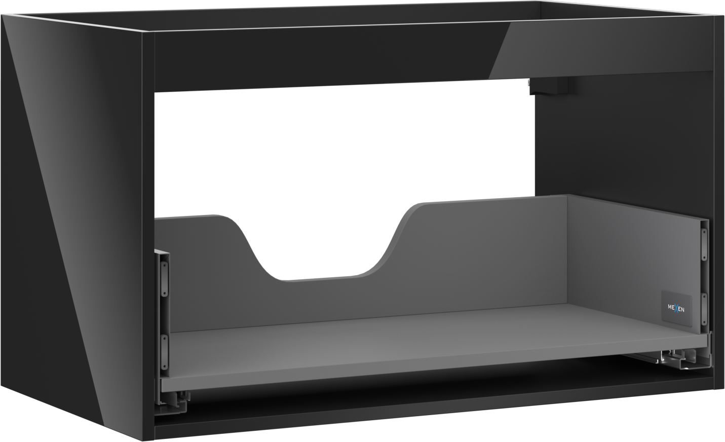 La découpe dans le tiroir est conçue de manière à accueillir le siphon, qui est nécessaire dans les installations de lavabo. Ainsi, le meuble peut être installé de manière pleinement fonctionnelle, sans devoir renoncer à l'espace du tiroir au profit de l'installation.