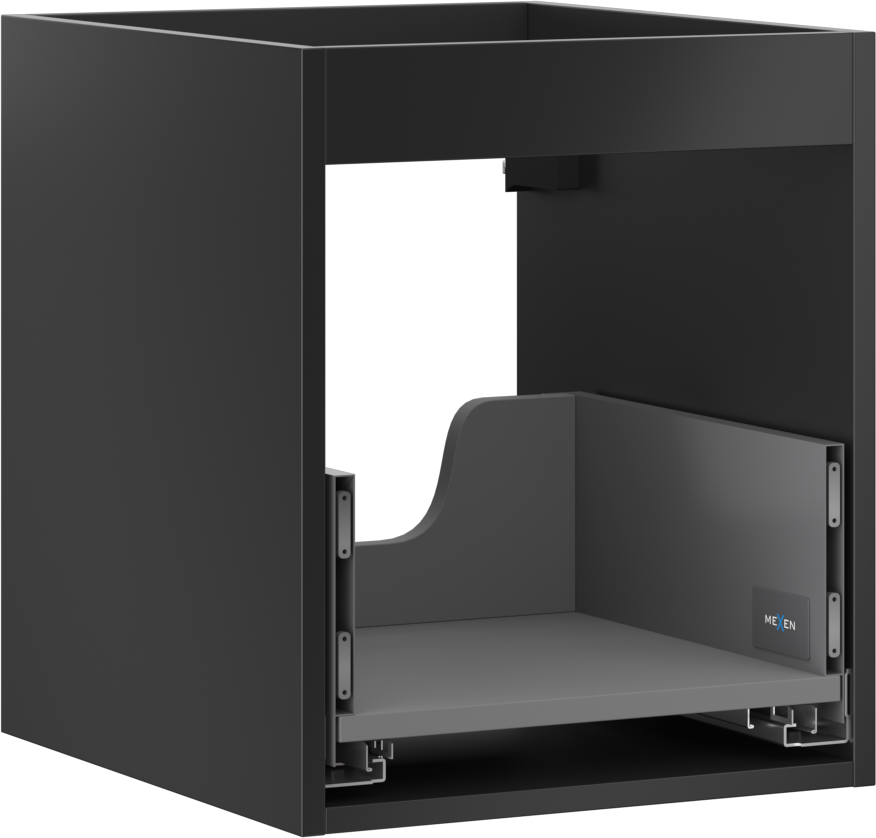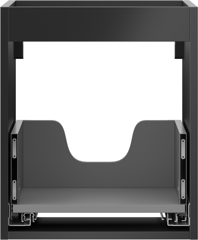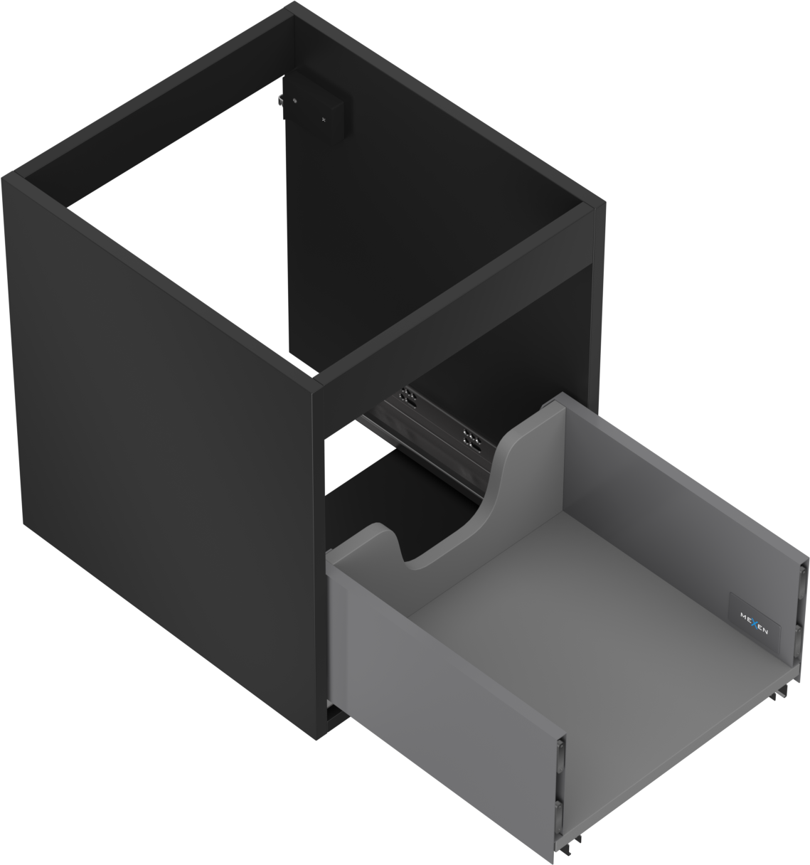 La découpe dans le tiroir est conçue de manière à accueillir le siphon, qui est nécessaire dans les installations de lavabo. Ainsi, le meuble peut être installé de manière pleinement fonctionnelle, sans devoir renoncer à l'espace du tiroir au profit de l'installation.