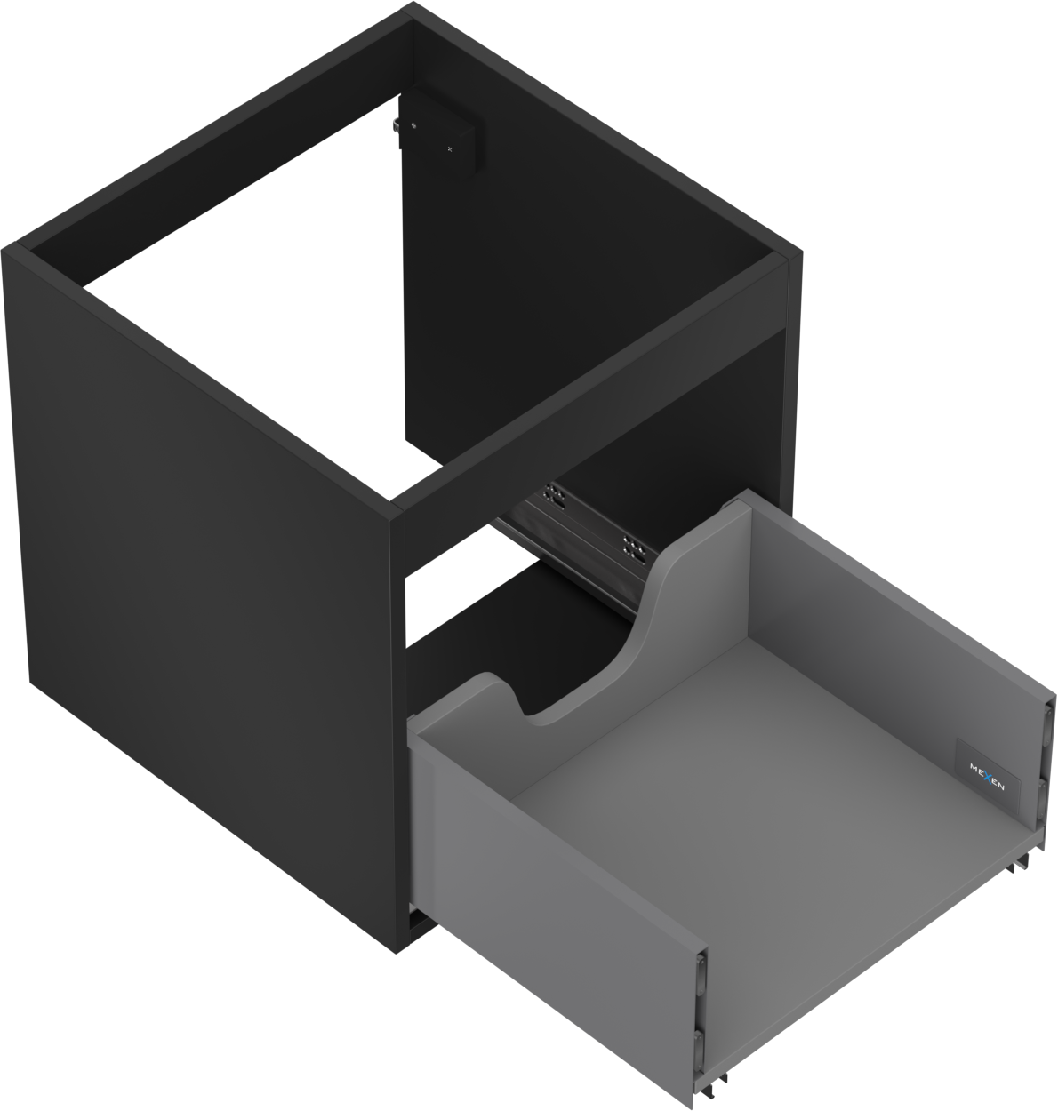 La découpe dans le tiroir est conçue de manière à accueillir le siphon, qui est nécessaire dans les installations de lavabo. Ainsi, le meuble peut être installé de manière pleinement fonctionnelle, sans devoir renoncer à l'espace du tiroir au profit de l'installation.