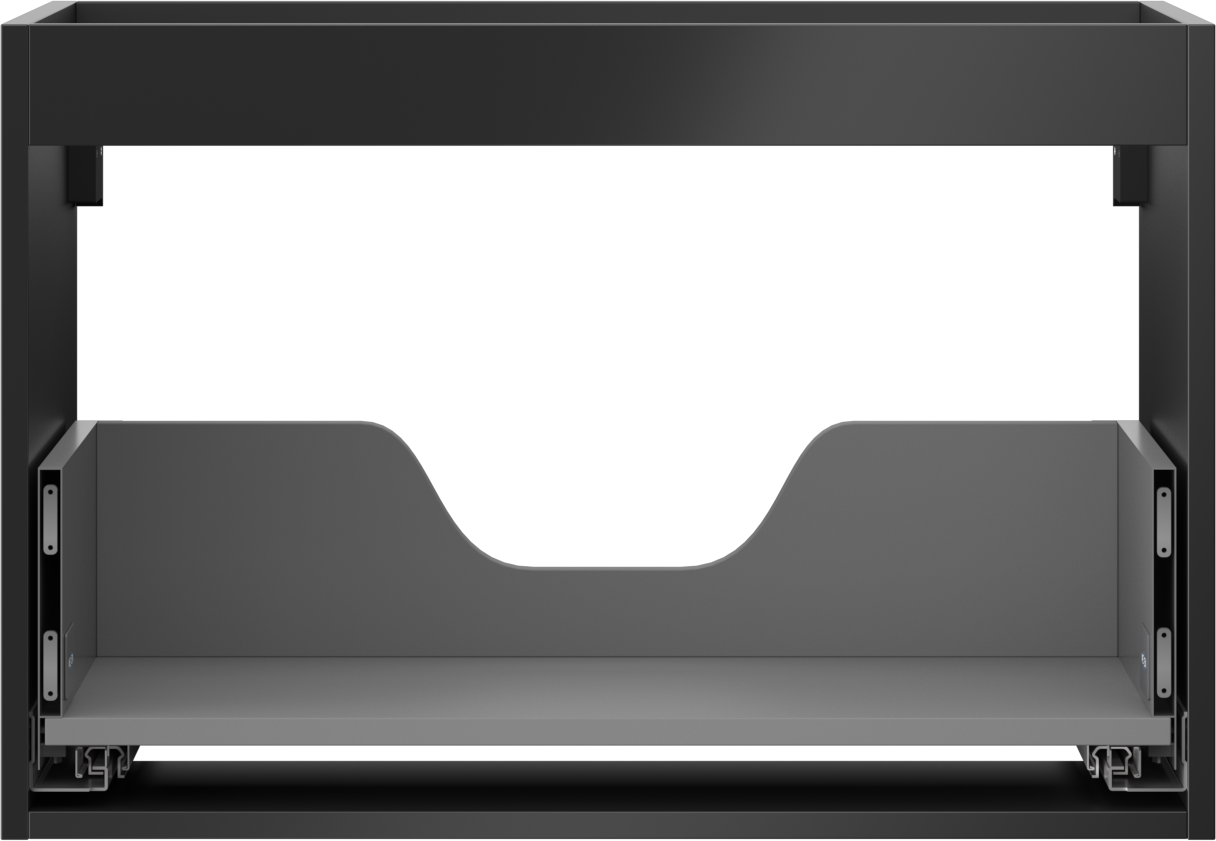 La découpe dans le tiroir est conçue de manière à accueillir le siphon, qui est nécessaire dans les installations de lavabo. Ainsi, le meuble peut être installé de manière pleinement fonctionnelle, sans devoir renoncer à l'espace du tiroir au profit de l'installation.