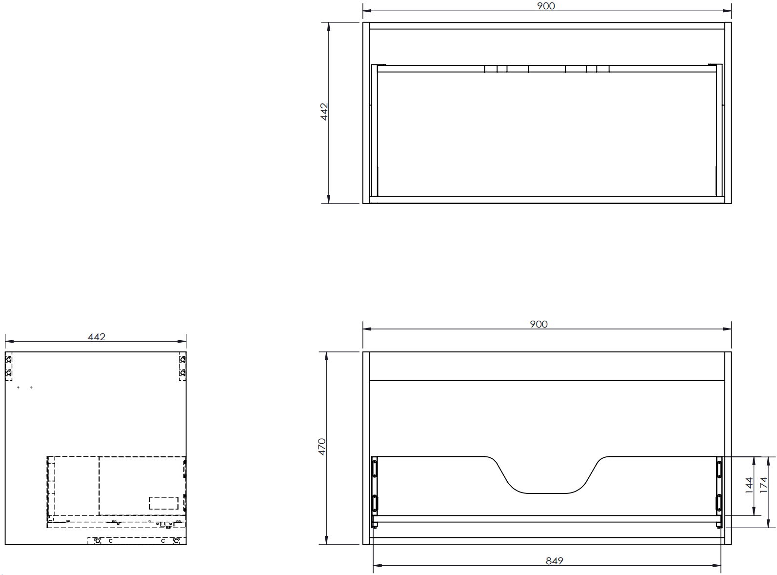 Mexen Box-A corps de meuble sous-vasque 90 cm, 1 tiroir, noir mat - 91AX0-0900-470-1-71
