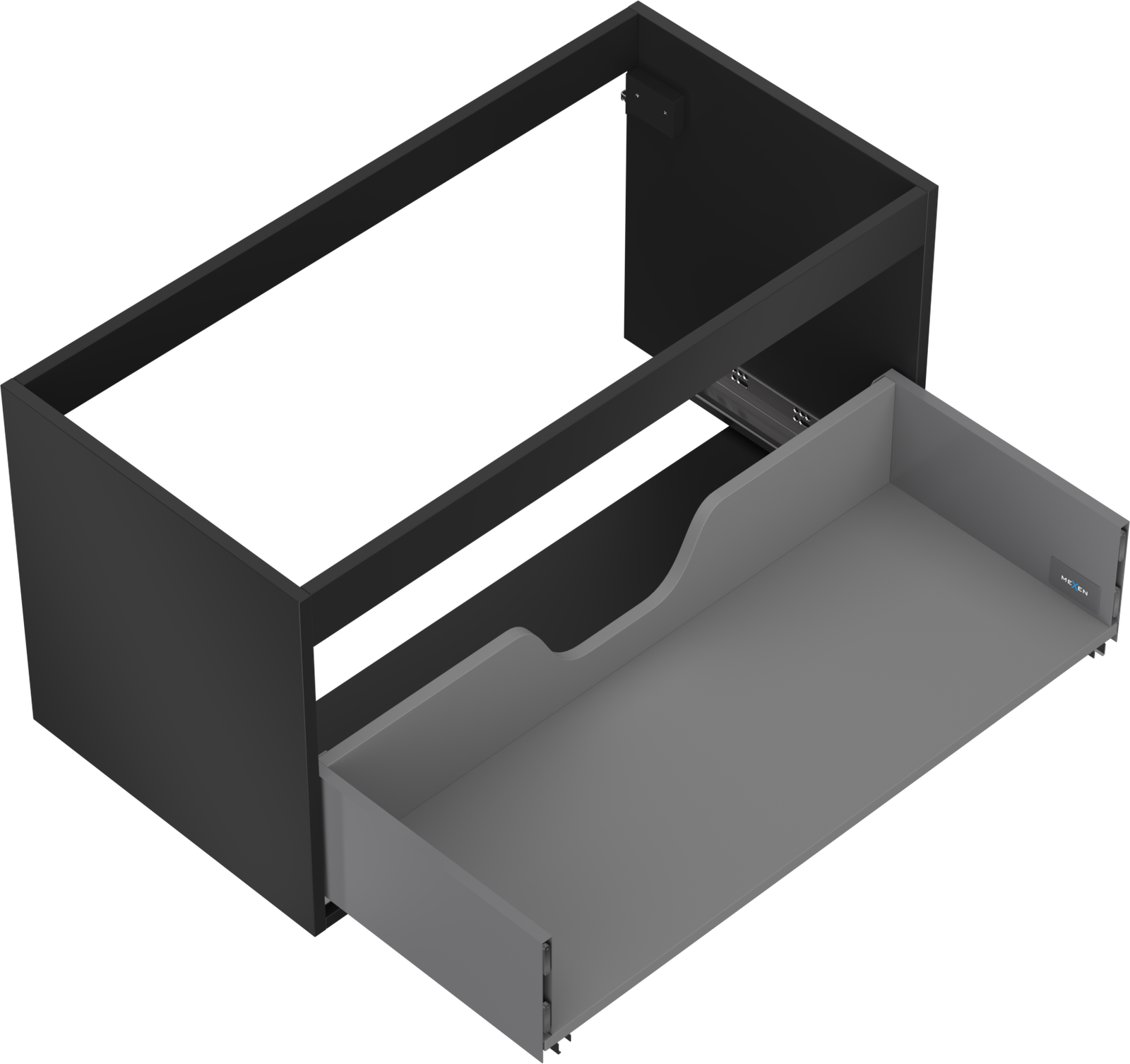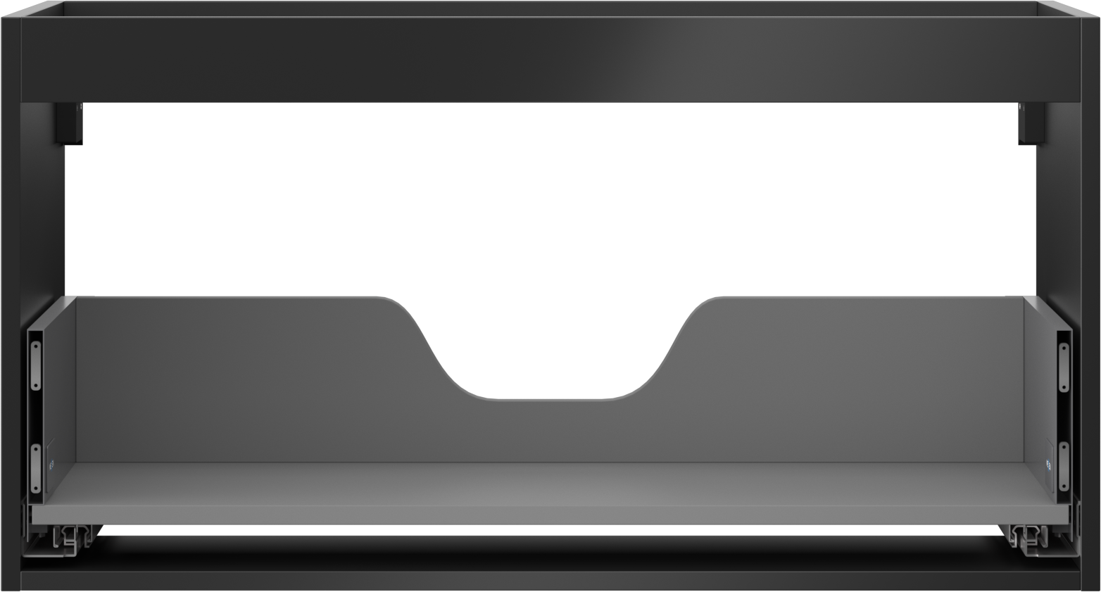 La découpe dans le tiroir est conçue de manière à accueillir le siphon, qui est nécessaire dans les installations de lavabo. Ainsi, le meuble peut être installé de manière pleinement fonctionnelle, sans devoir renoncer à l'espace du tiroir au profit de l'installation.