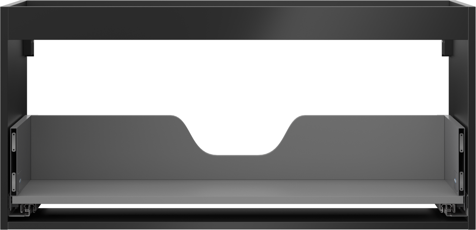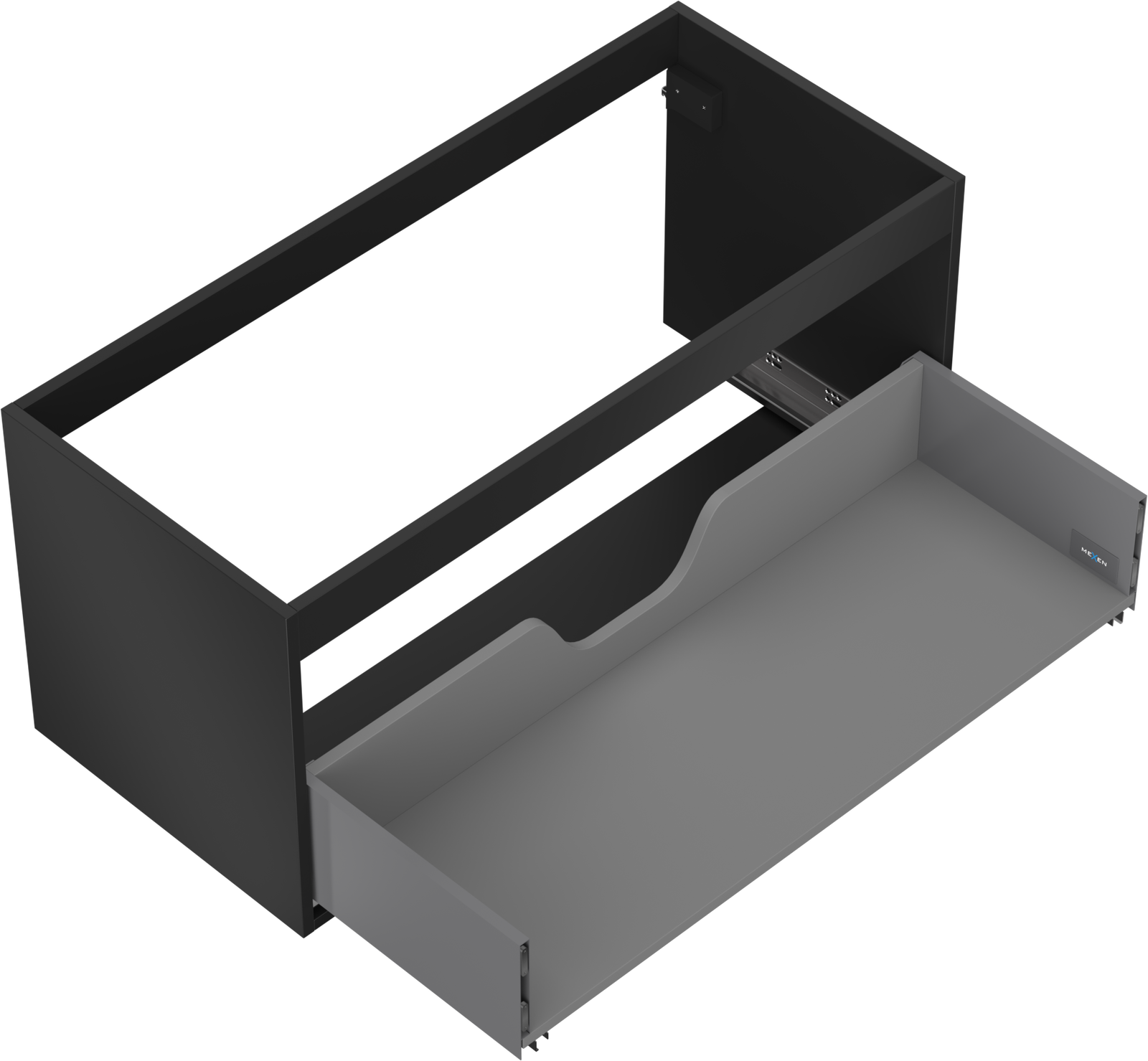 La découpe dans le tiroir est conçue de manière à accueillir le siphon, qui est nécessaire dans les installations de lavabo. Ainsi, le meuble peut être installé de manière pleinement fonctionnelle, sans devoir renoncer à l'espace du tiroir au profit de l'installation.