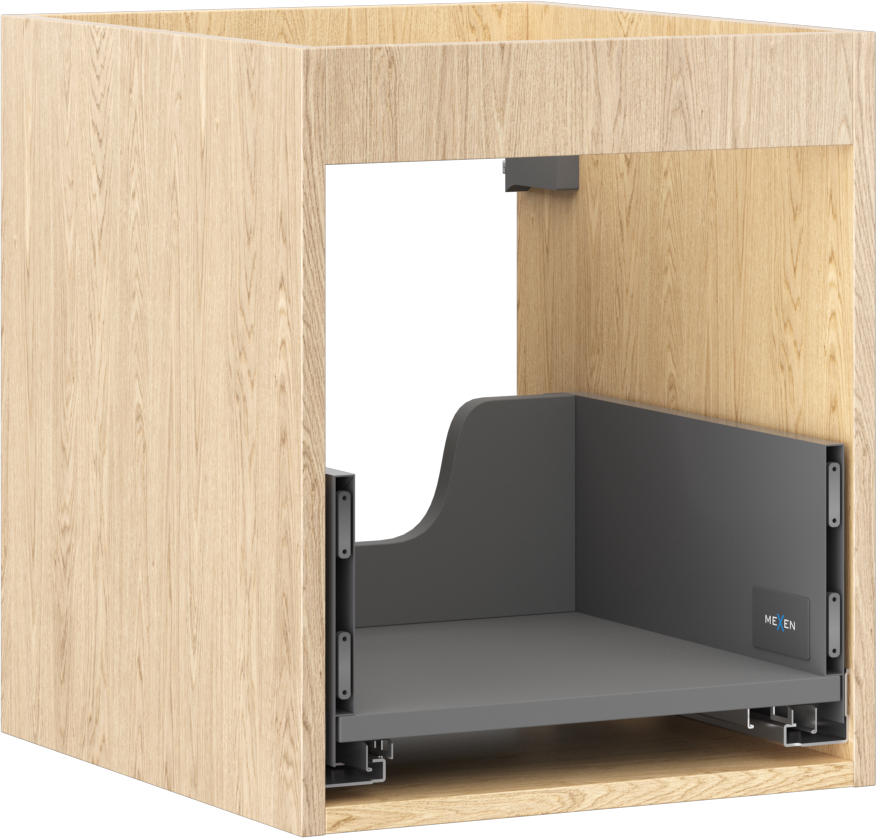 Un tiroir à sortie complète est un type de tiroir équipé d'un mécanisme permettant son extraction totale du corps du meuble. Ce mécanisme facilite l'accès au contenu du tiroir, car il n'est pas nécessaire d'atteindre les bords arrière.