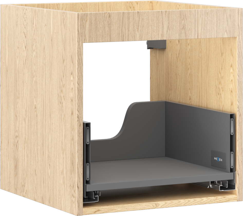 Un tiroir à sortie complète est un type de tiroir équipé d'un mécanisme permettant son extraction totale du corps du meuble. Ce mécanisme facilite l'accès au contenu du tiroir, car il n'est pas nécessaire d'atteindre les bords arrière.