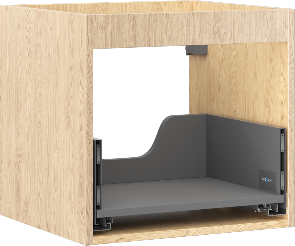 Un tiroir à sortie complète est un type de tiroir équipé d'un mécanisme permettant son extraction totale du corps du meuble. Ce mécanisme facilite l'accès au contenu du tiroir, car il n'est pas nécessaire d'atteindre les bords arrière.