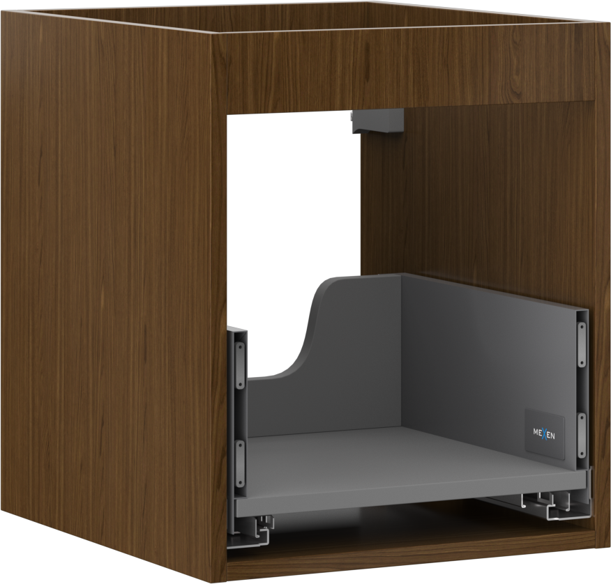 Un tiroir à sortie complète est un type de tiroir équipé d'un mécanisme permettant son extraction totale du corps du meuble. Ce mécanisme facilite l'accès au contenu du tiroir, car il n'est pas nécessaire d'atteindre les bords arrière.