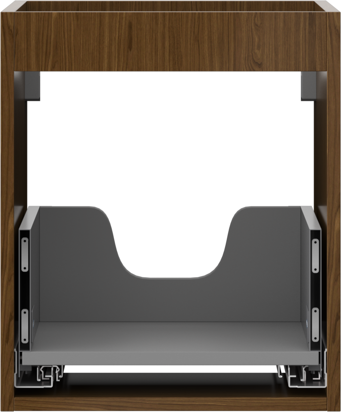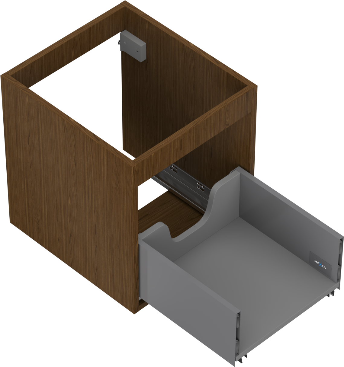 La découpe dans le tiroir est conçue de manière à accueillir le siphon, qui est nécessaire dans les installations de lavabo. Ainsi, le meuble peut être installé de manière pleinement fonctionnelle, sans devoir renoncer à l'espace du tiroir au profit de l'installation.