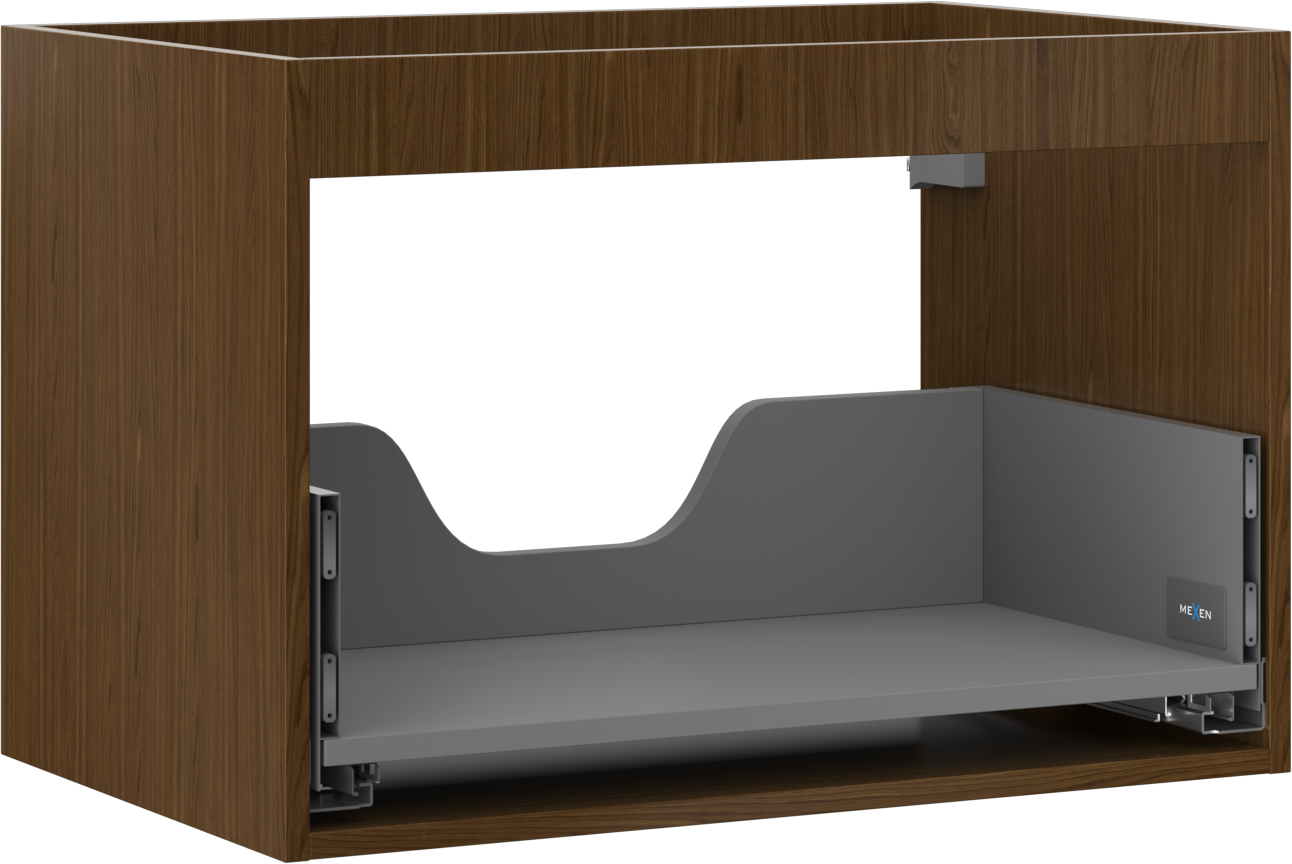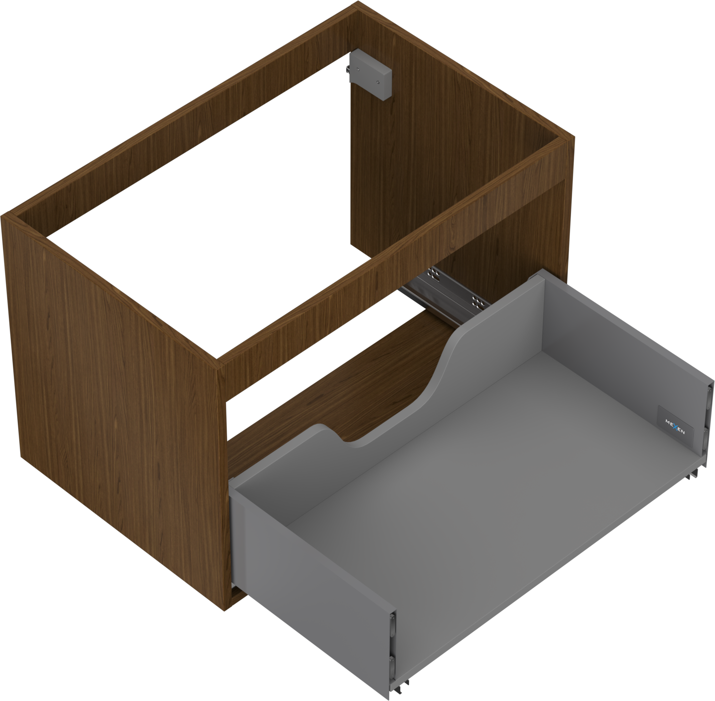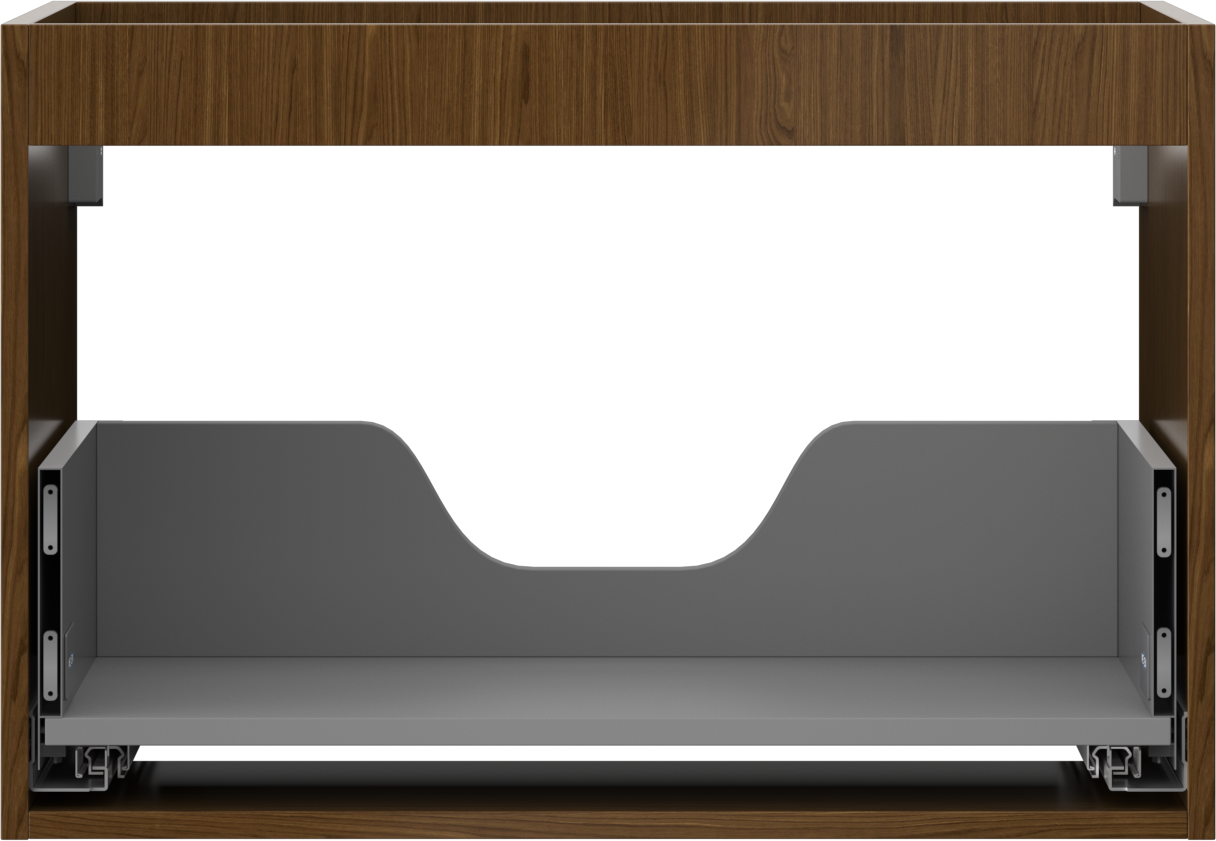 La découpe dans le tiroir est conçue de manière à accueillir le siphon, qui est nécessaire dans les installations de lavabo. Ainsi, le meuble peut être installé de manière pleinement fonctionnelle, sans devoir renoncer à l'espace du tiroir au profit de l'installation.