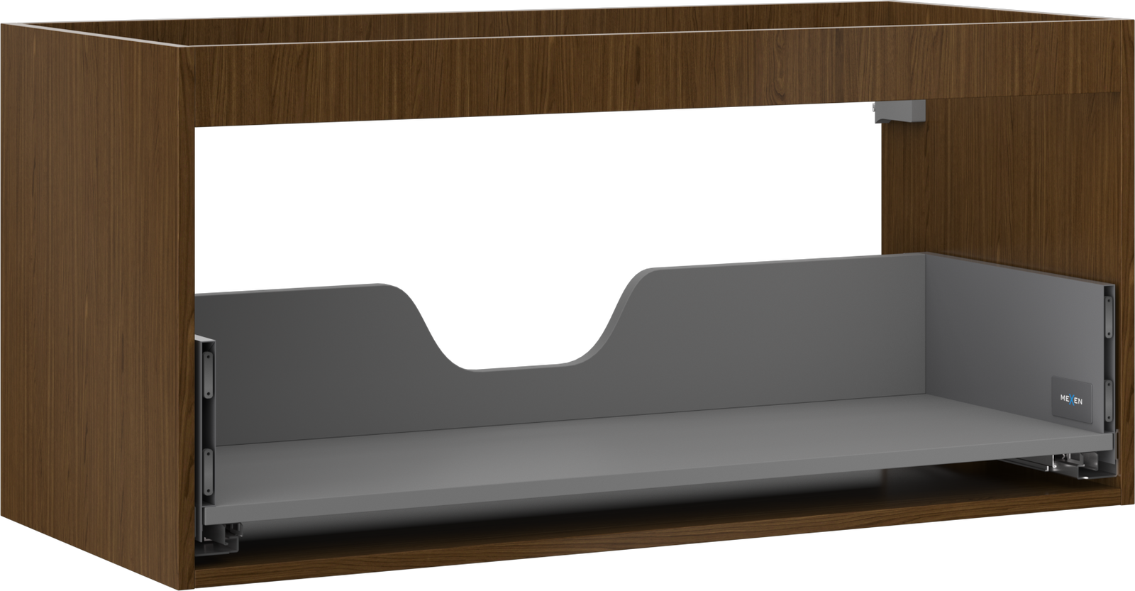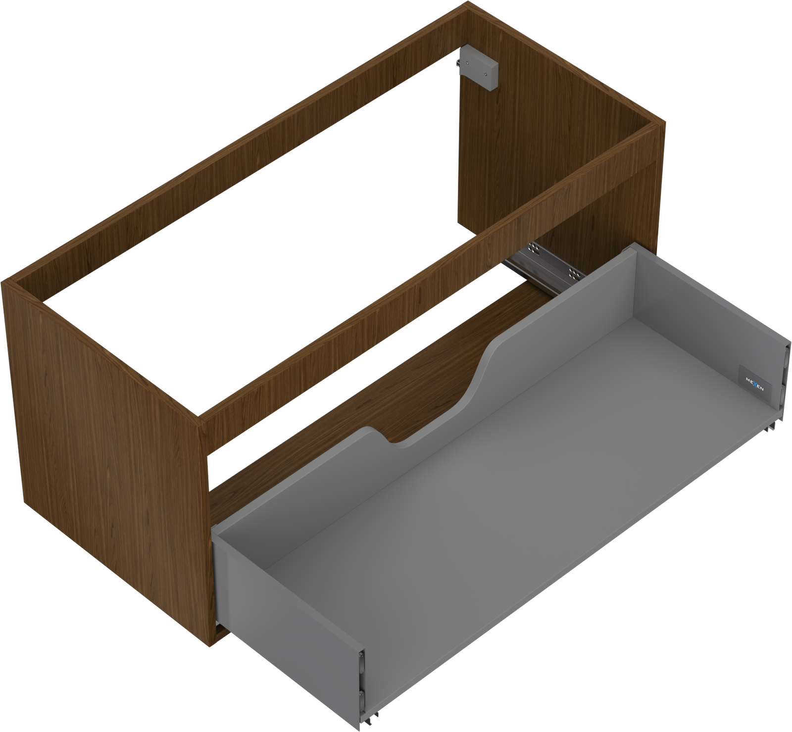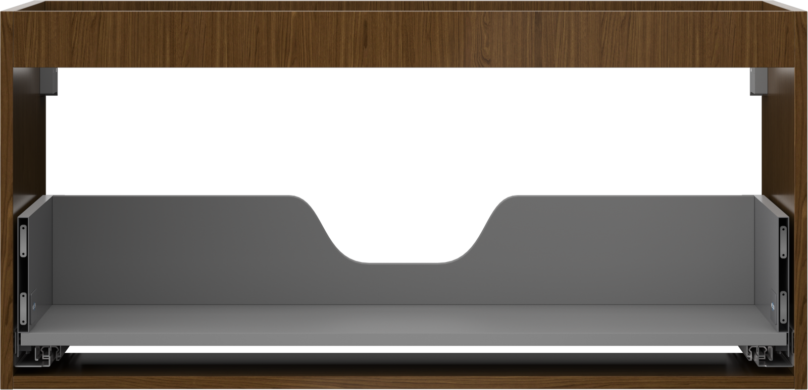 La découpe dans le tiroir est conçue de manière à accueillir le siphon, qui est nécessaire dans les installations de lavabo. Ainsi, le meuble peut être installé de manière pleinement fonctionnelle, sans devoir renoncer à l'espace du tiroir au profit de l'installation.