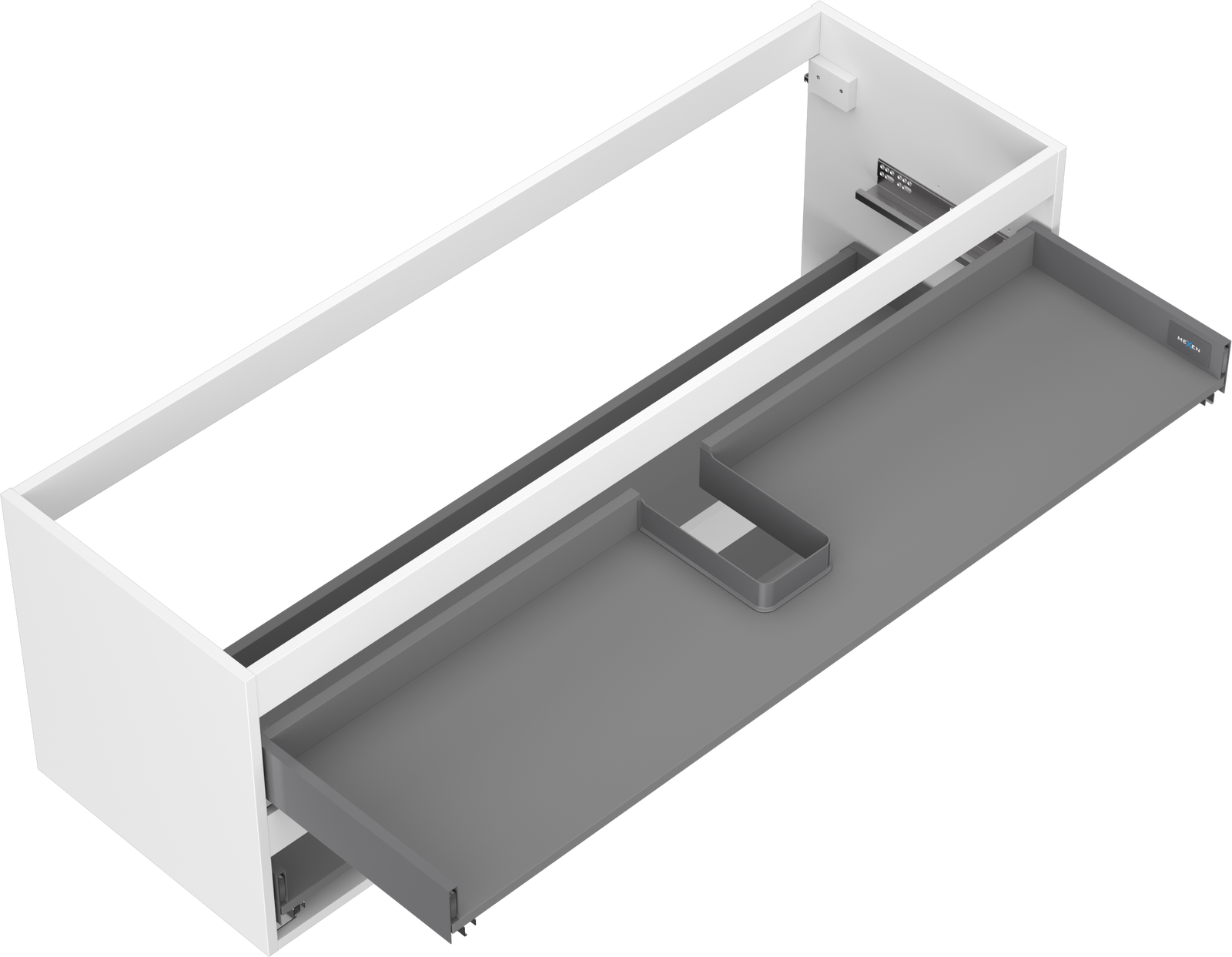 La découpe dans le tiroir est conçue de manière à accueillir le siphon, qui est nécessaire dans les installations de lavabo. Ainsi, le meuble peut être installé de manière pleinement fonctionnelle, sans devoir renoncer à l'espace du tiroir au profit de l'installation.