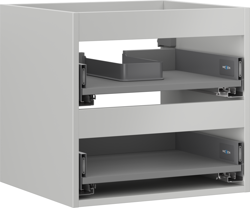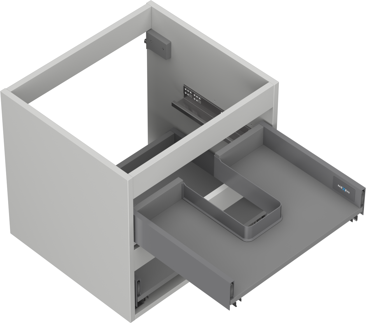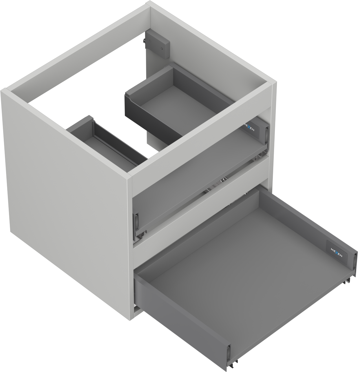 Un tiroir à sortie complète est un type de tiroir équipé d'un mécanisme permettant son extraction totale du corps du meuble. Ce mécanisme facilite l'accès au contenu du tiroir, car il n'est pas nécessaire d'atteindre les bords arrière.
