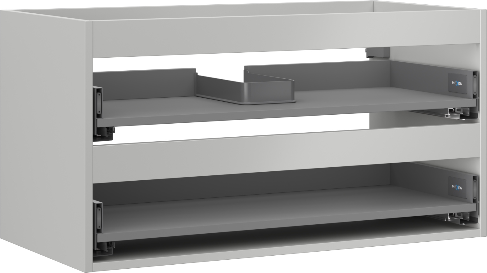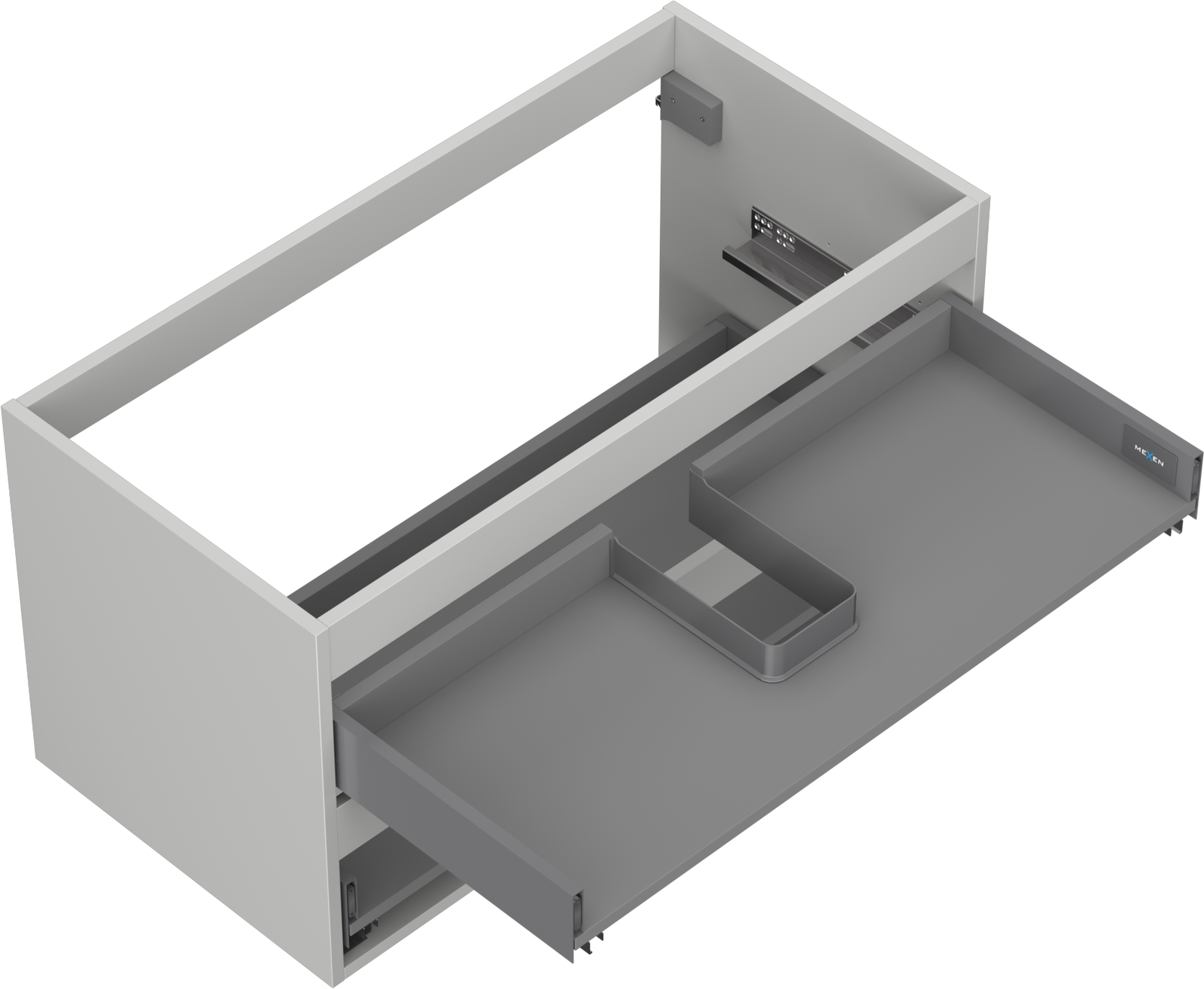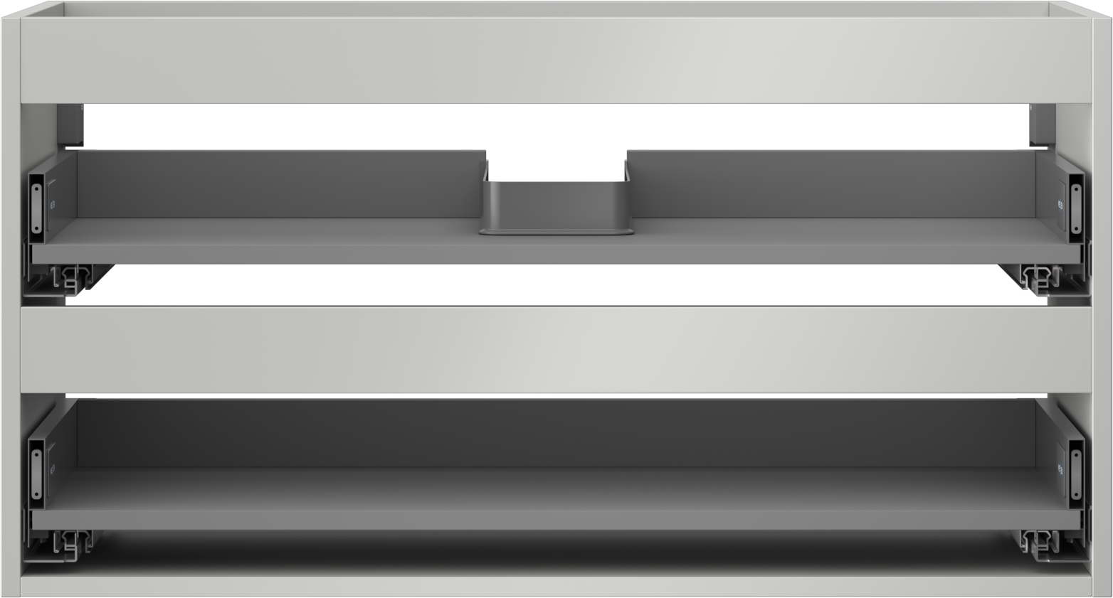 La découpe dans le tiroir est conçue de manière à accueillir le siphon, qui est nécessaire dans les installations de lavabo. Ainsi, le meuble peut être installé de manière pleinement fonctionnelle, sans devoir renoncer à l'espace du tiroir au profit de l'installation.