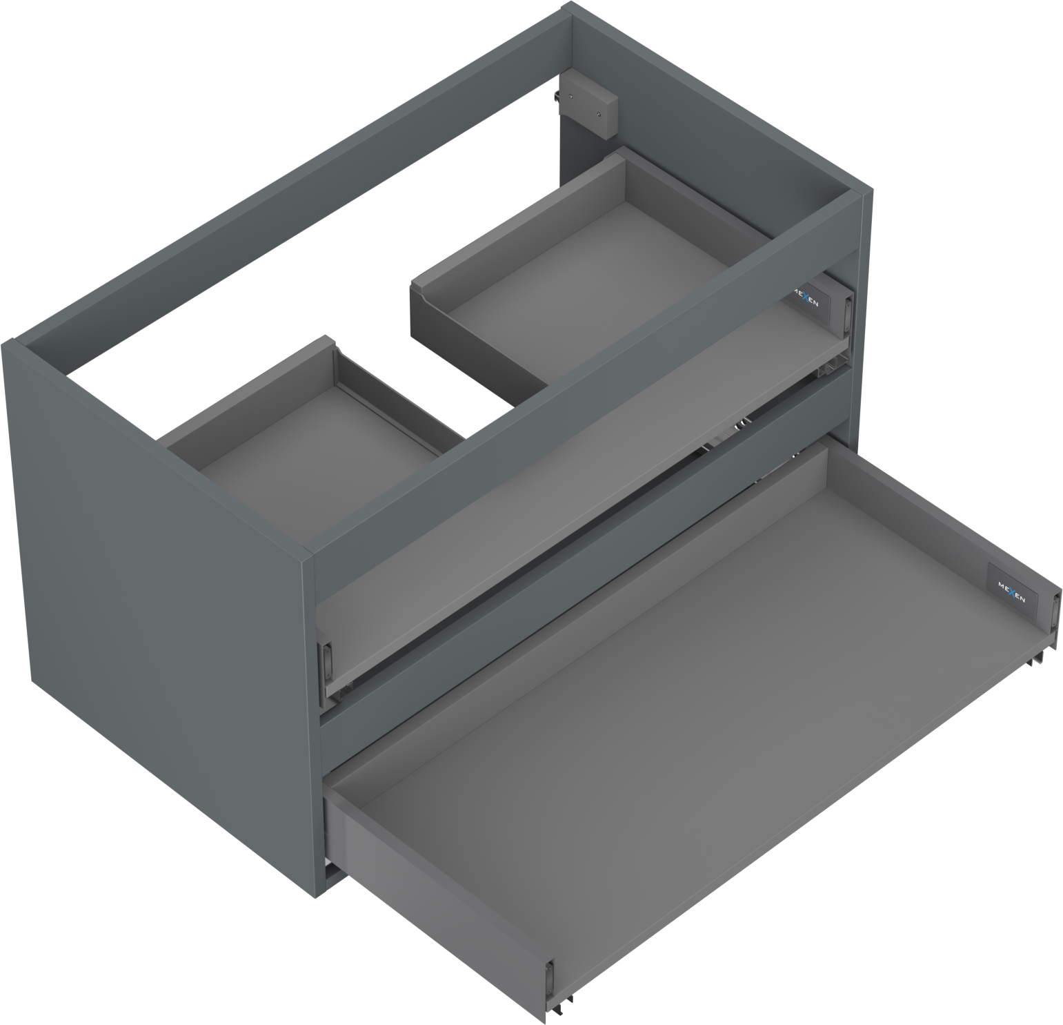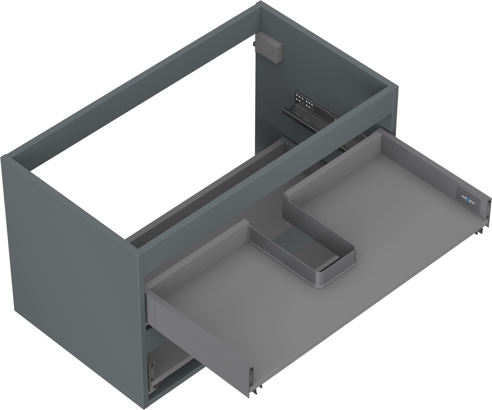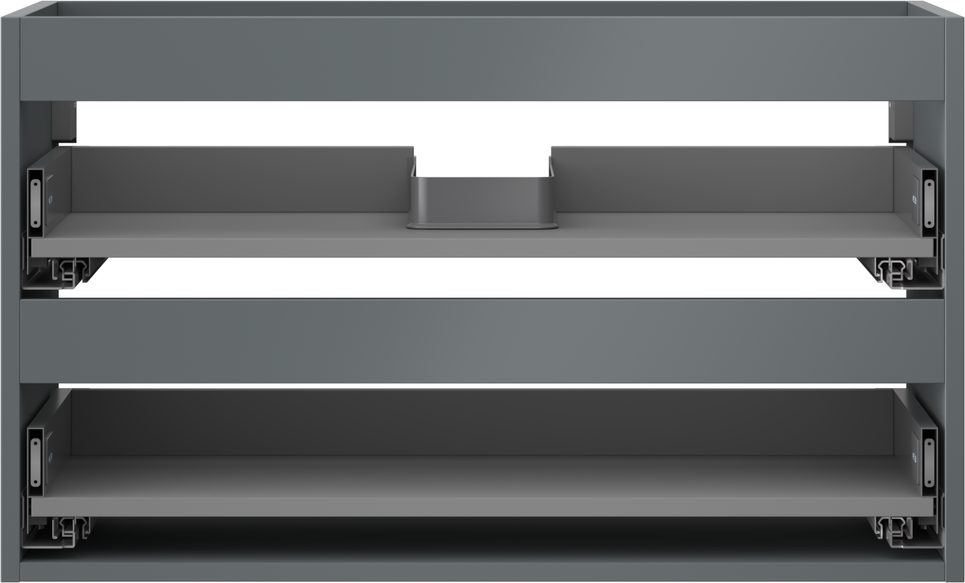 La découpe dans le tiroir est conçue de manière à accueillir le siphon, qui est nécessaire dans les installations de lavabo. Ainsi, le meuble peut être installé de manière pleinement fonctionnelle, sans devoir renoncer à l'espace du tiroir au profit de l'installation.