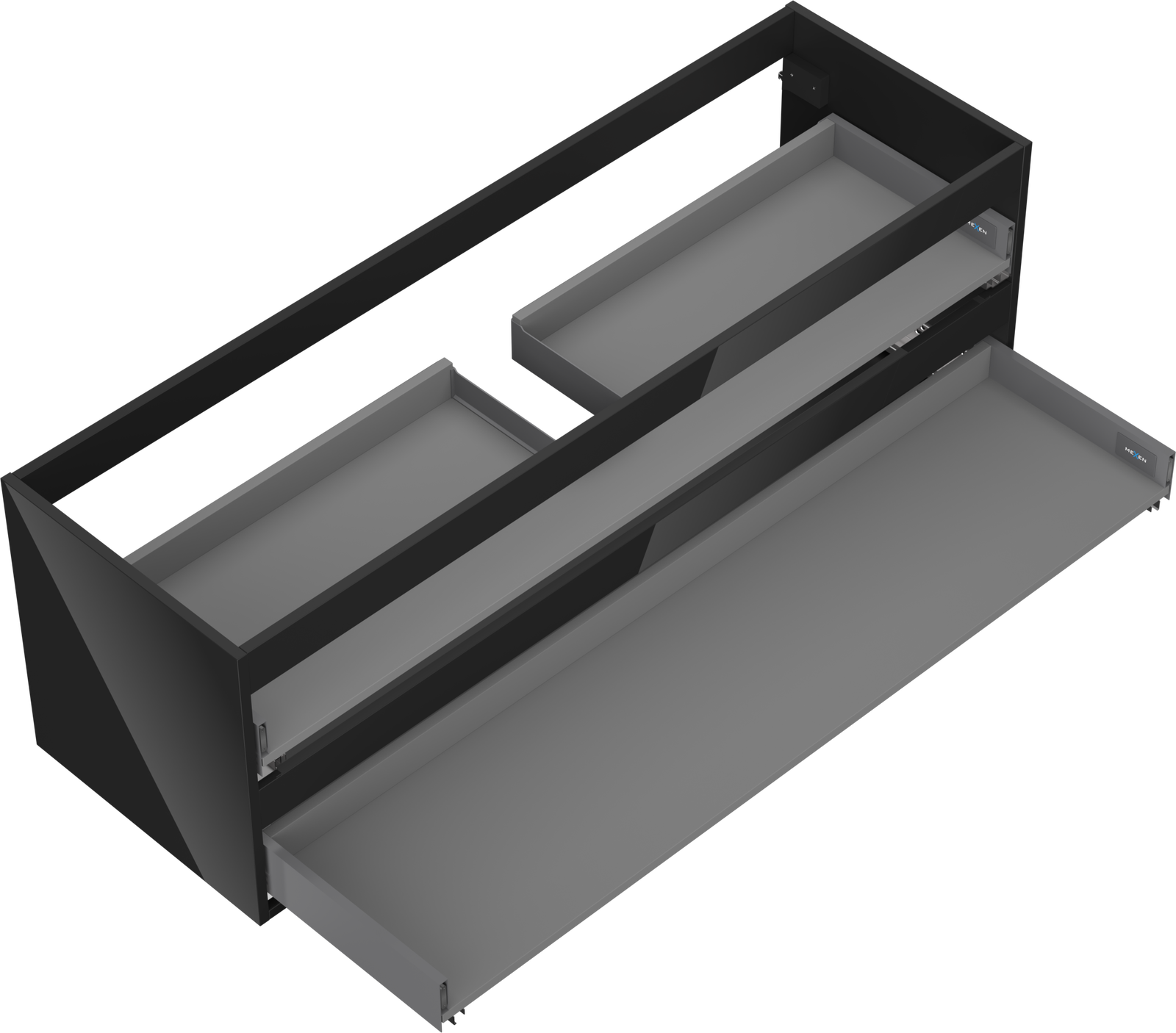 Mexen Box-A corps de meuble sous-vasque 140 cm, 2 tiroirs, noir brillant - 91AX0-1400-470-2-70