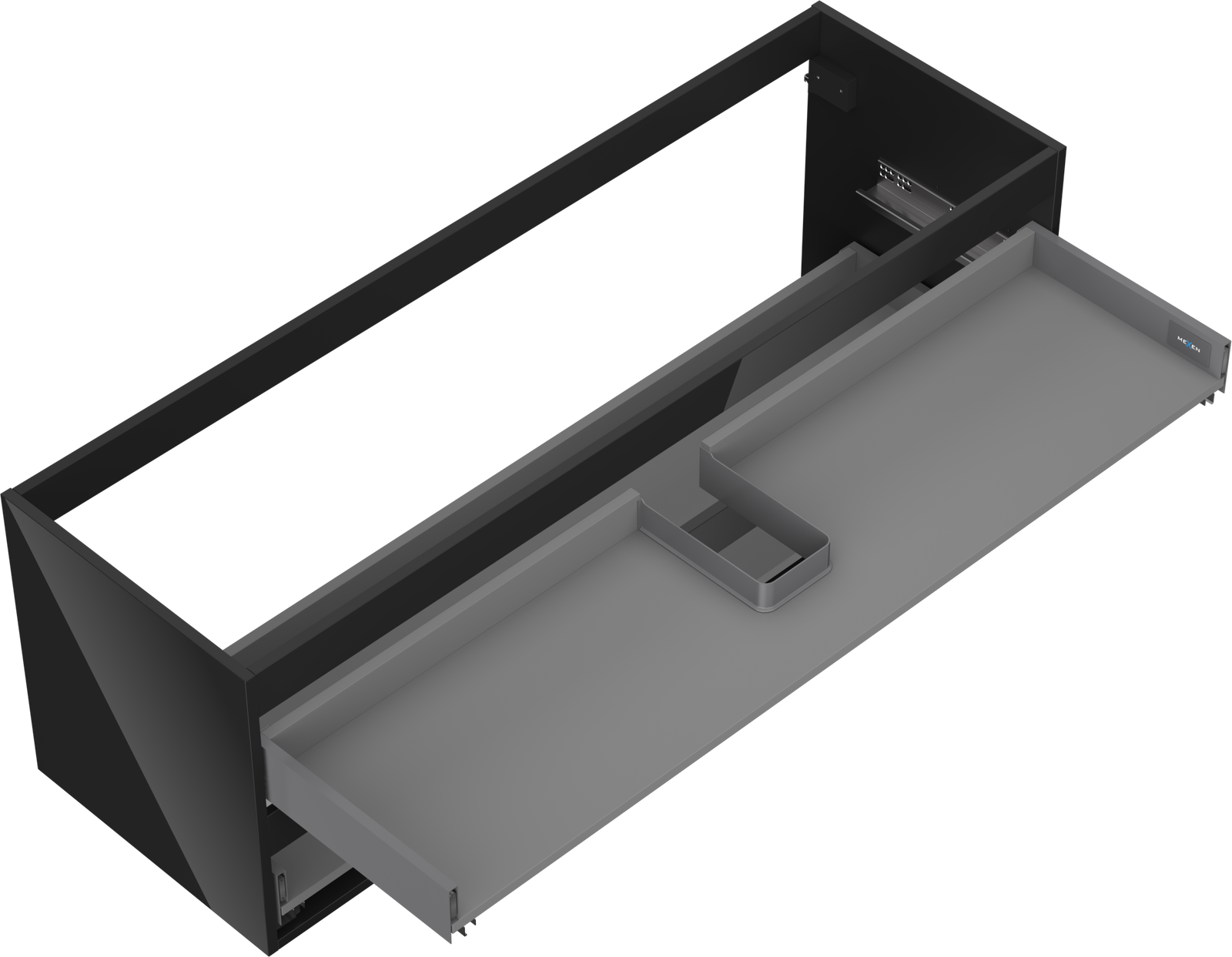 La découpe dans le tiroir est conçue de manière à accueillir le siphon, qui est nécessaire dans les installations de lavabo. Ainsi, le meuble peut être installé de manière pleinement fonctionnelle, sans devoir renoncer à l'espace du tiroir au profit de l'installation.