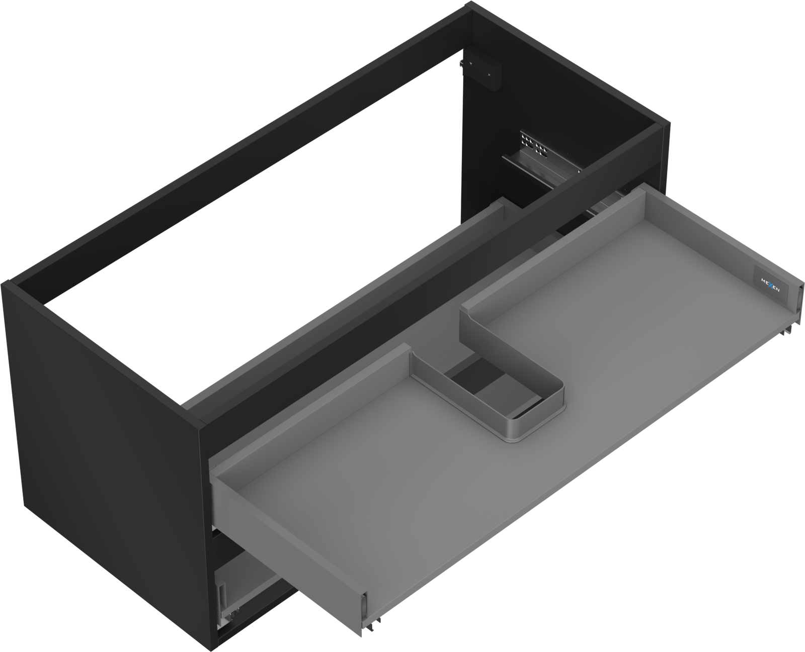 La découpe dans le tiroir est conçue de manière à accueillir le siphon, qui est nécessaire dans les installations de lavabo. Ainsi, le meuble peut être installé de manière pleinement fonctionnelle, sans devoir renoncer à l'espace du tiroir au profit de l'installation.