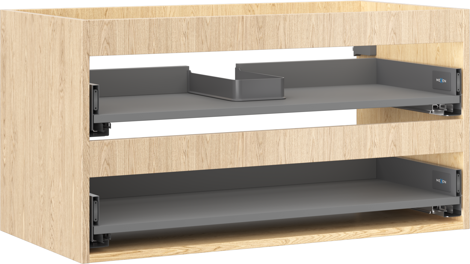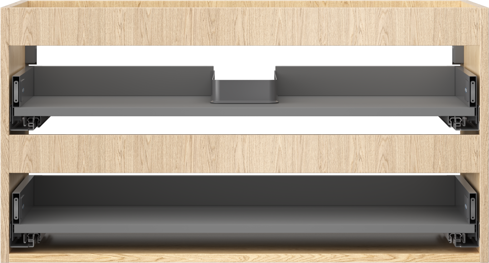 La découpe dans le tiroir est conçue de manière à accueillir le siphon, qui est nécessaire dans les installations de lavabo. Ainsi, le meuble peut être installé de manière pleinement fonctionnelle, sans devoir renoncer à l'espace du tiroir au profit de l'installation.