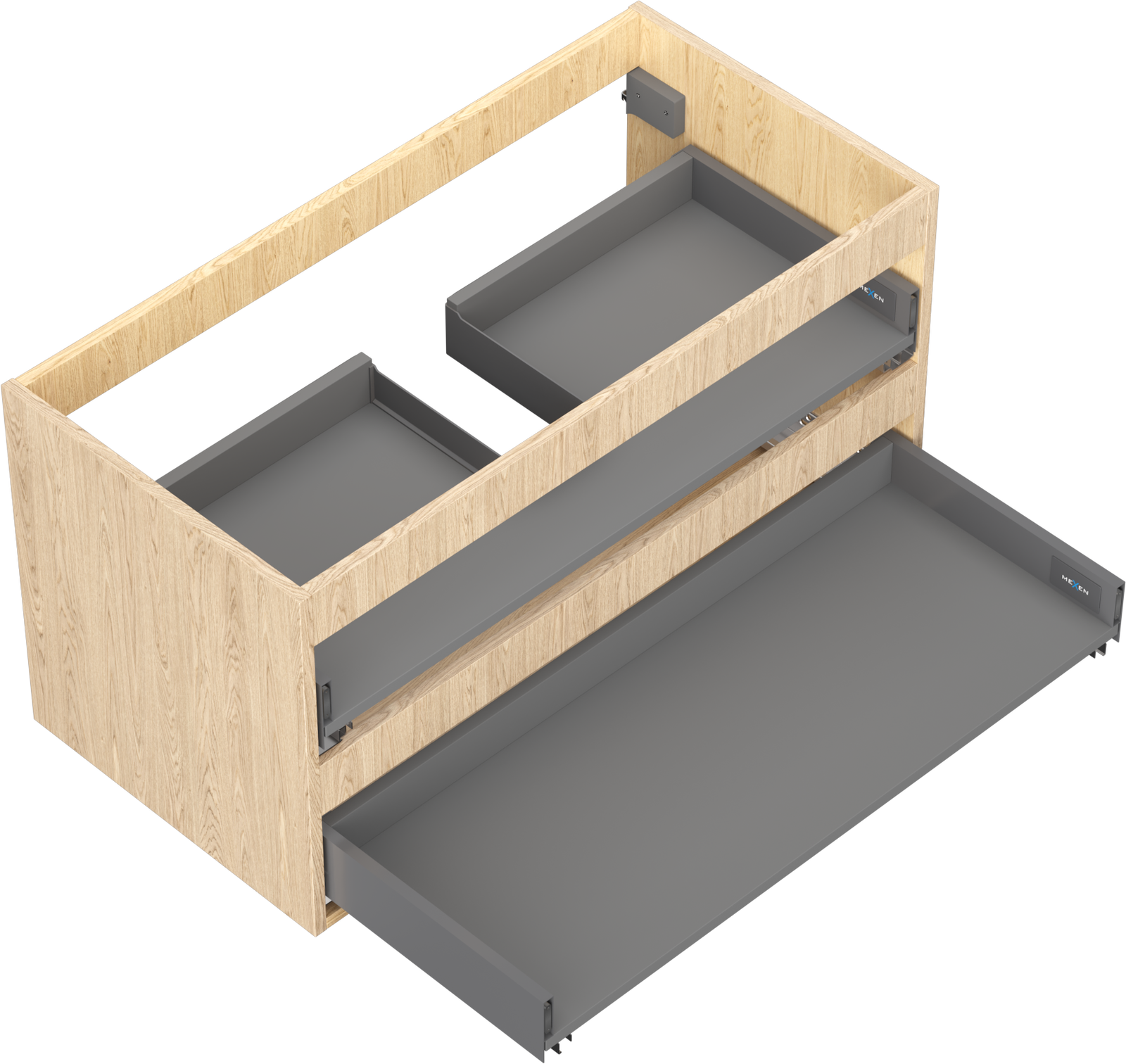 Un tiroir à sortie complète est un type de tiroir équipé d'un mécanisme permettant son extraction totale du corps du meuble. Ce mécanisme facilite l'accès au contenu du tiroir, car il n'est pas nécessaire d'atteindre les bords arrière.
