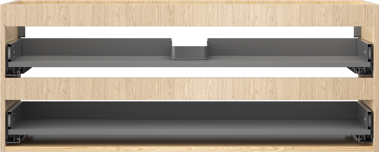 La découpe dans le tiroir est conçue de manière à accueillir le siphon, qui est nécessaire dans les installations de lavabo. Ainsi, le meuble peut être installé de manière pleinement fonctionnelle, sans devoir renoncer à l'espace du tiroir au profit de l'installation.