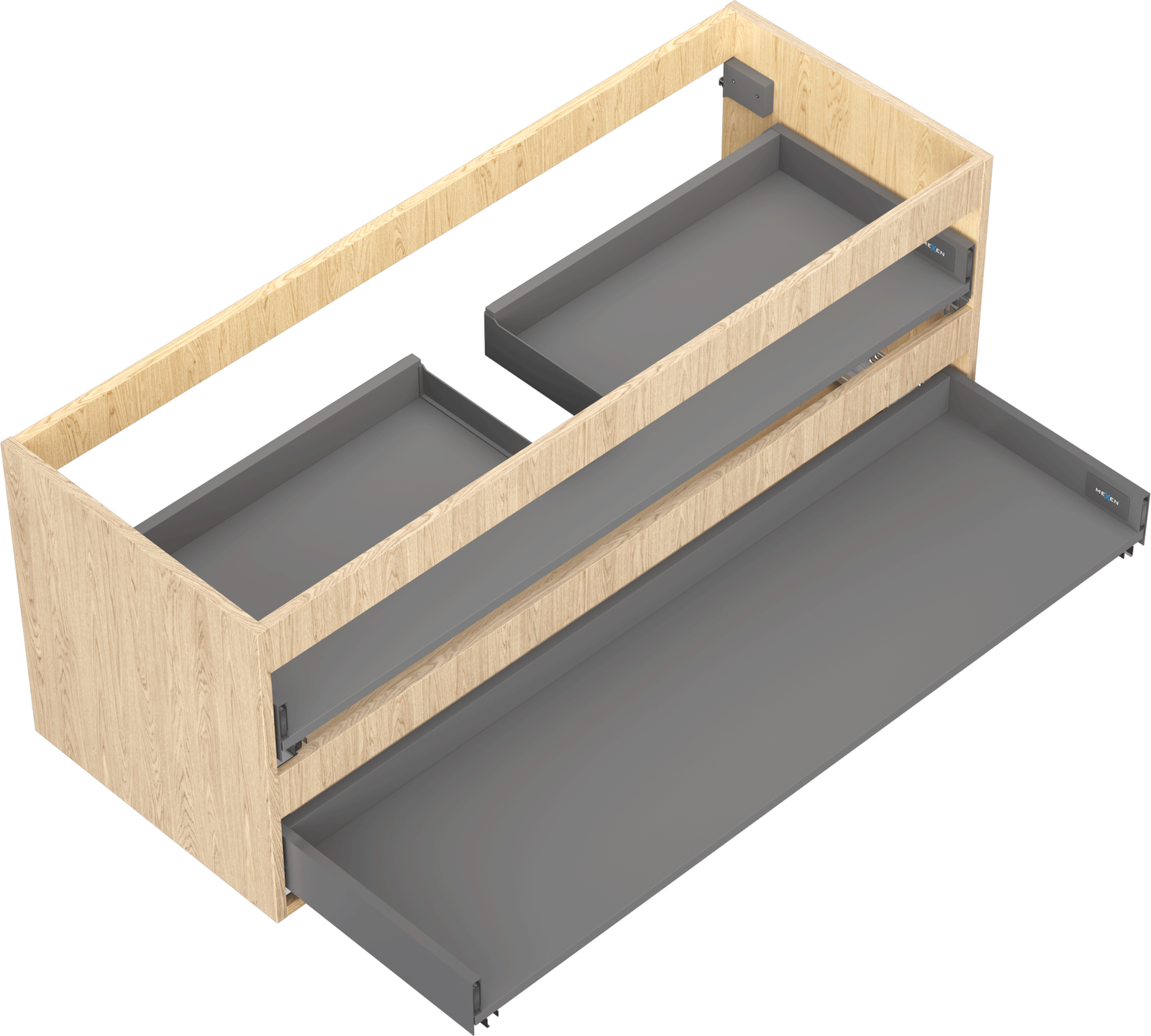 Un tiroir à sortie complète est un type de tiroir équipé d'un mécanisme permettant son extraction totale du corps du meuble. Ce mécanisme facilite l'accès au contenu du tiroir, car il n'est pas nécessaire d'atteindre les bords arrière.