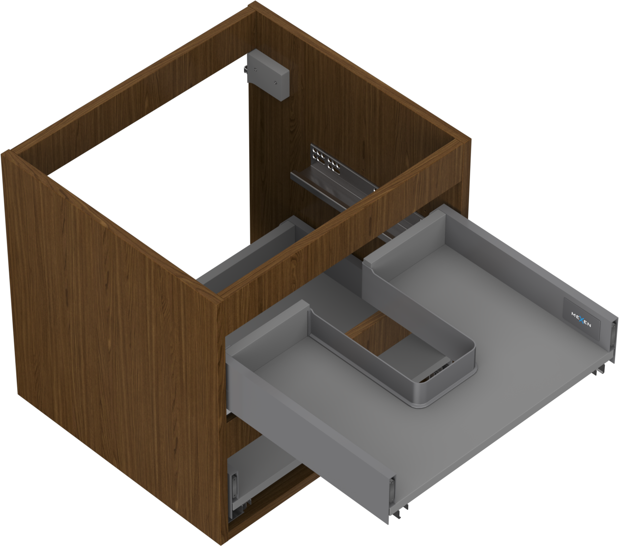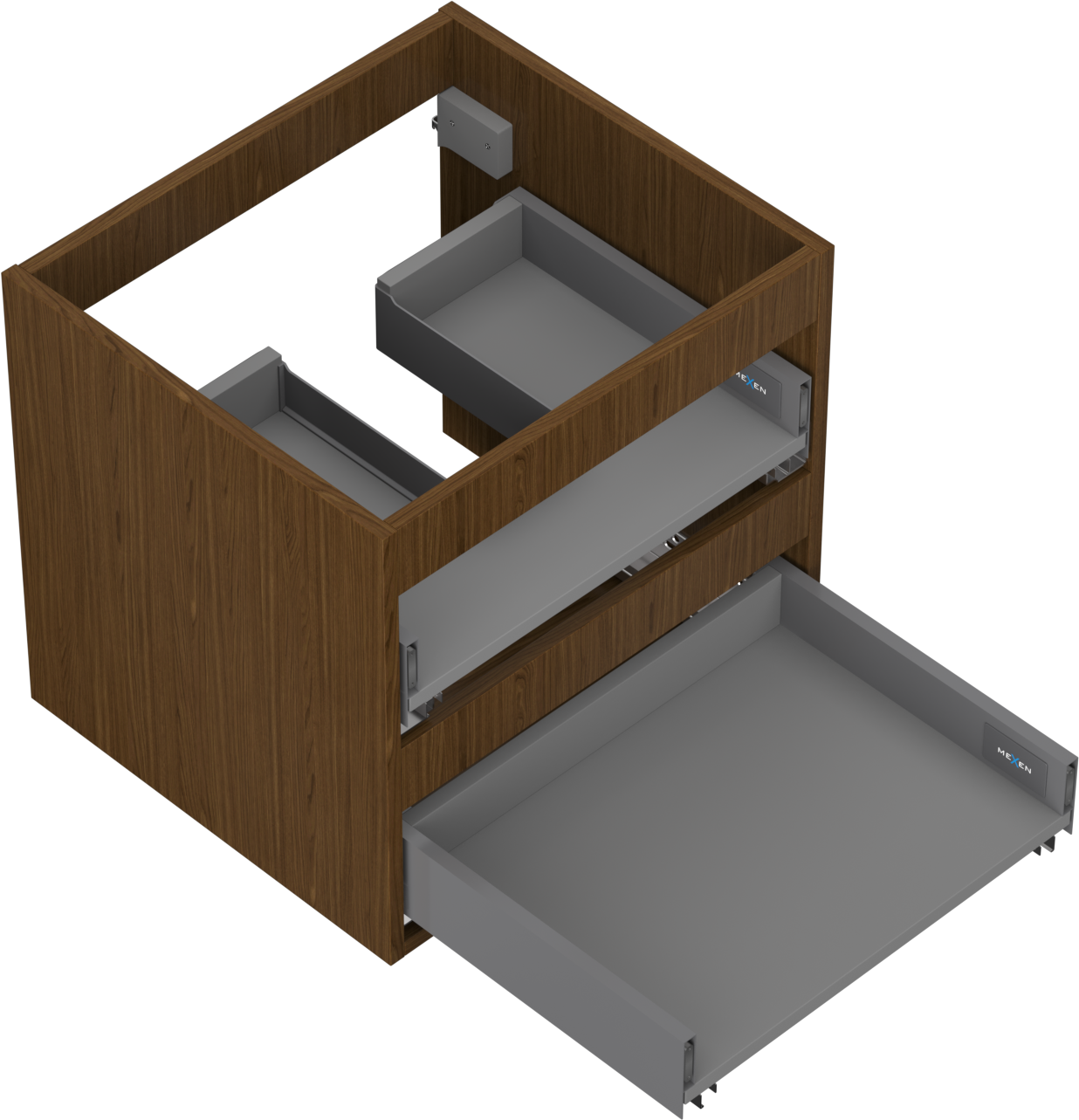 Un tiroir à sortie complète est un type de tiroir équipé d'un mécanisme permettant son extraction totale du corps du meuble. Ce mécanisme facilite l'accès au contenu du tiroir, car il n'est pas nécessaire d'atteindre les bords arrière.