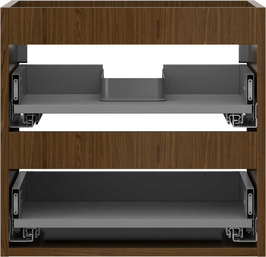 La découpe dans le tiroir est conçue de manière à accueillir le siphon, qui est nécessaire dans les installations de lavabo. Ainsi, le meuble peut être installé de manière pleinement fonctionnelle, sans devoir renoncer à l'espace du tiroir au profit de l'installation.