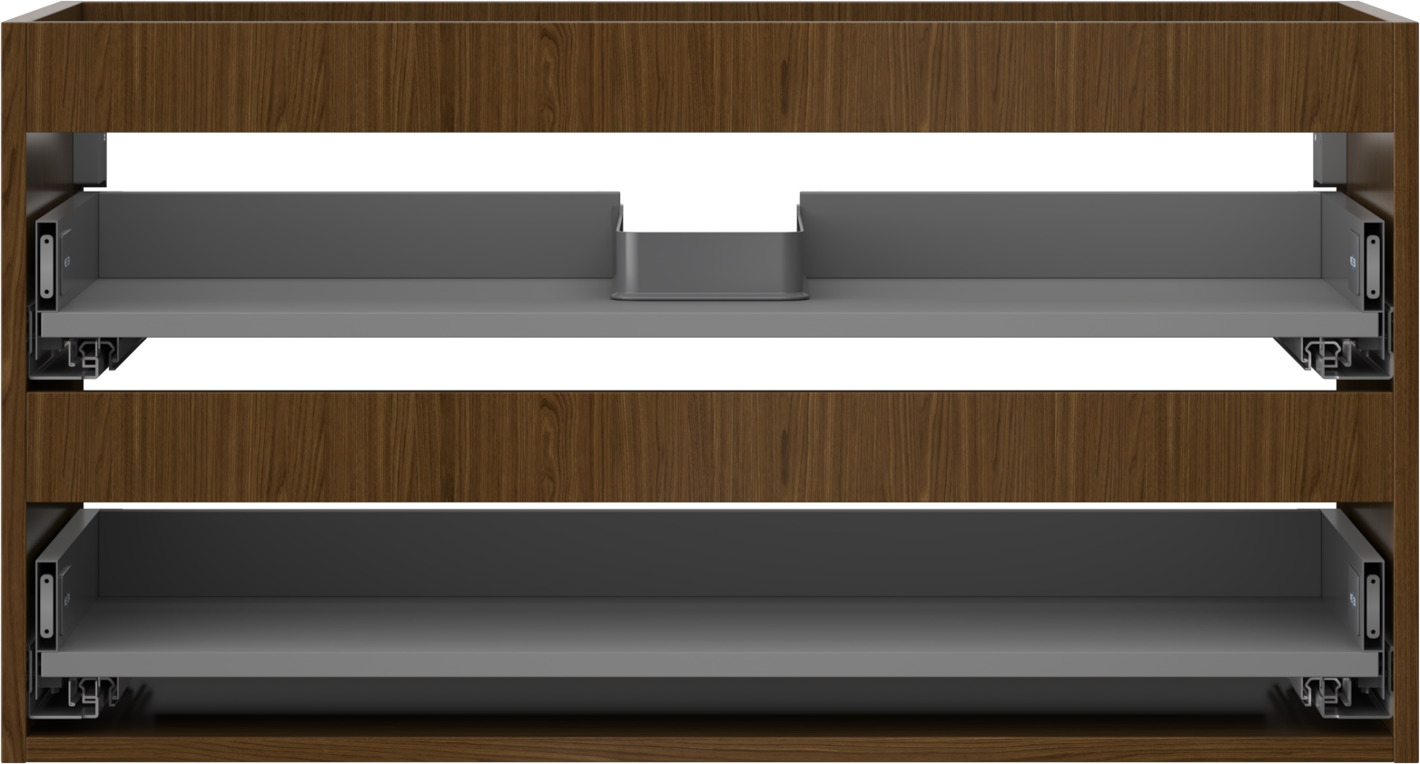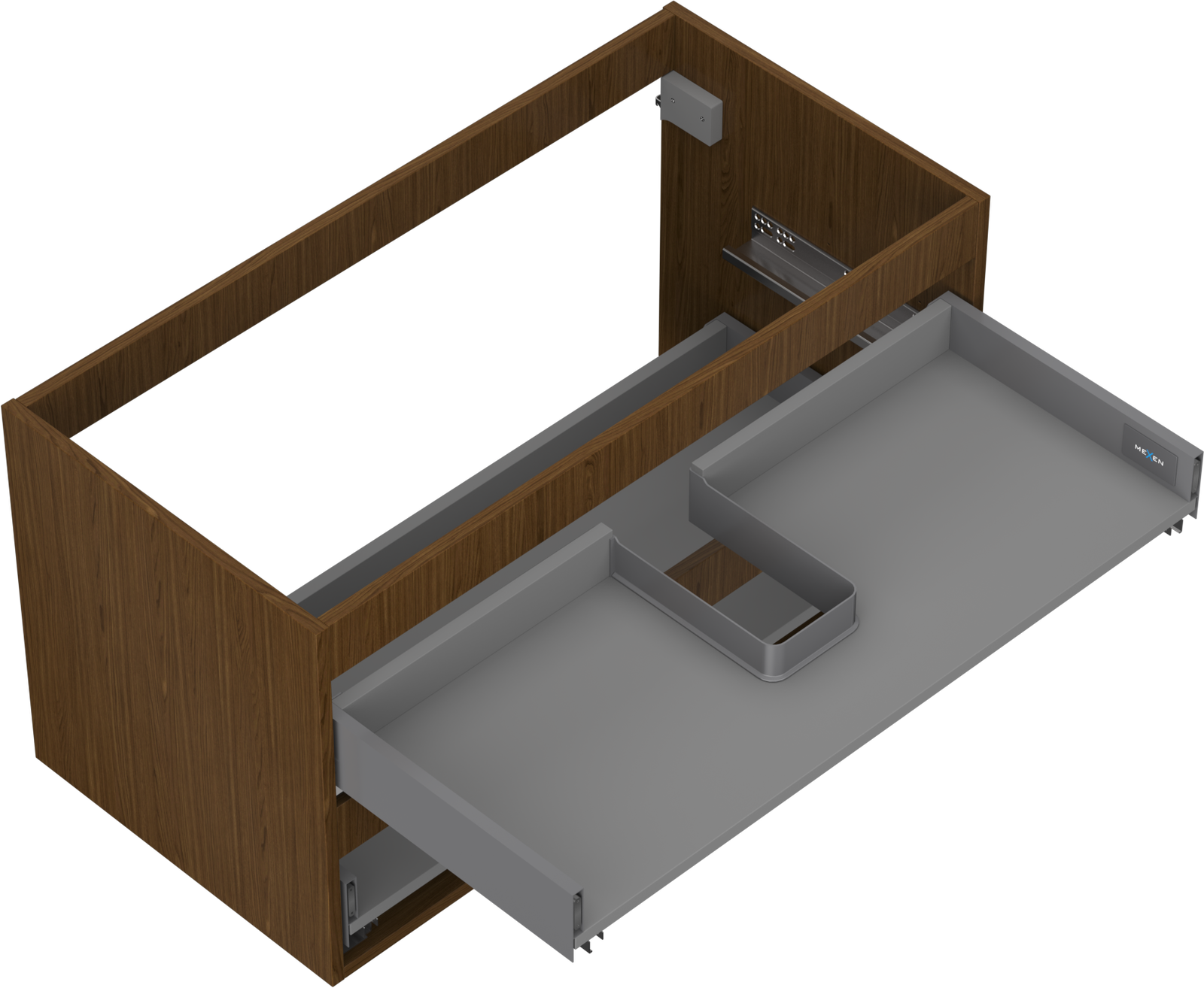 La découpe dans le tiroir est conçue de manière à accueillir le siphon, qui est nécessaire dans les installations de lavabo. Ainsi, le meuble peut être installé de manière pleinement fonctionnelle, sans devoir renoncer à l'espace du tiroir au profit de l'installation.