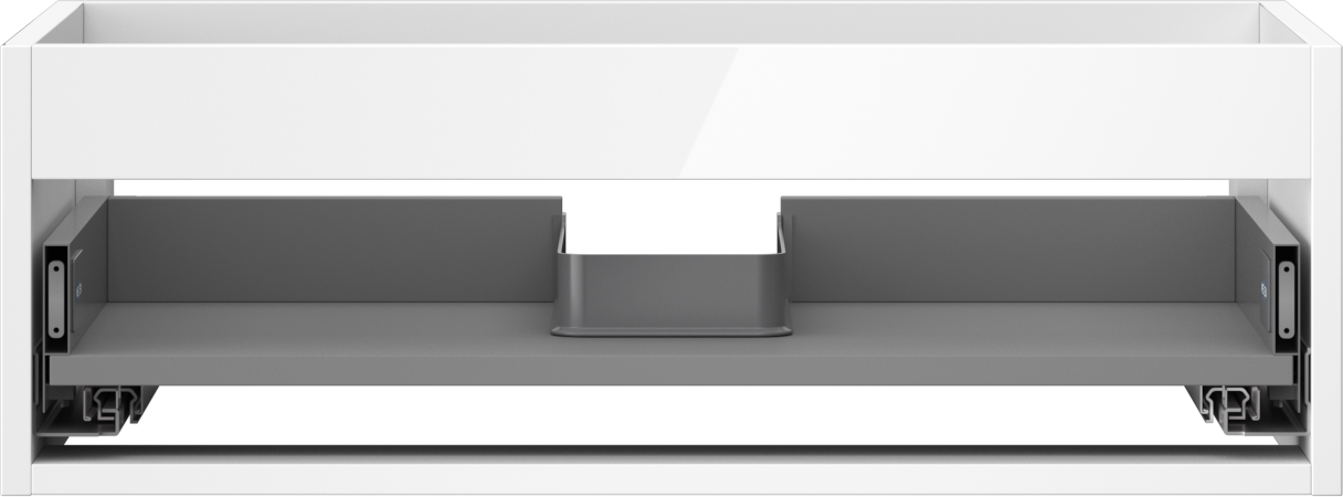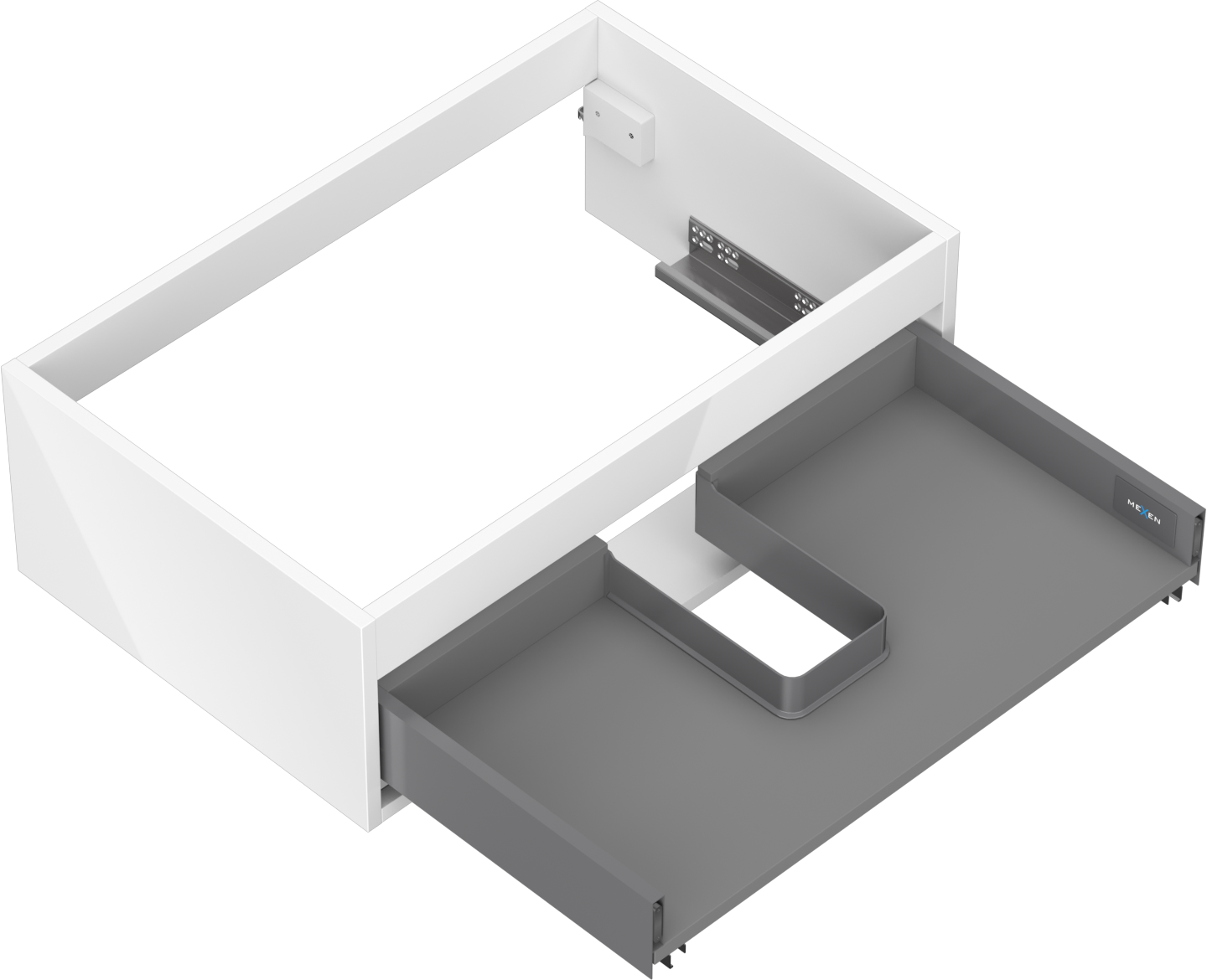 La découpe dans le tiroir est conçue de manière à accueillir le siphon, qui est nécessaire dans les installations de lavabo. Ainsi, le meuble peut être installé de manière pleinement fonctionnelle, sans devoir renoncer à l'espace du tiroir au profit de l'installation.