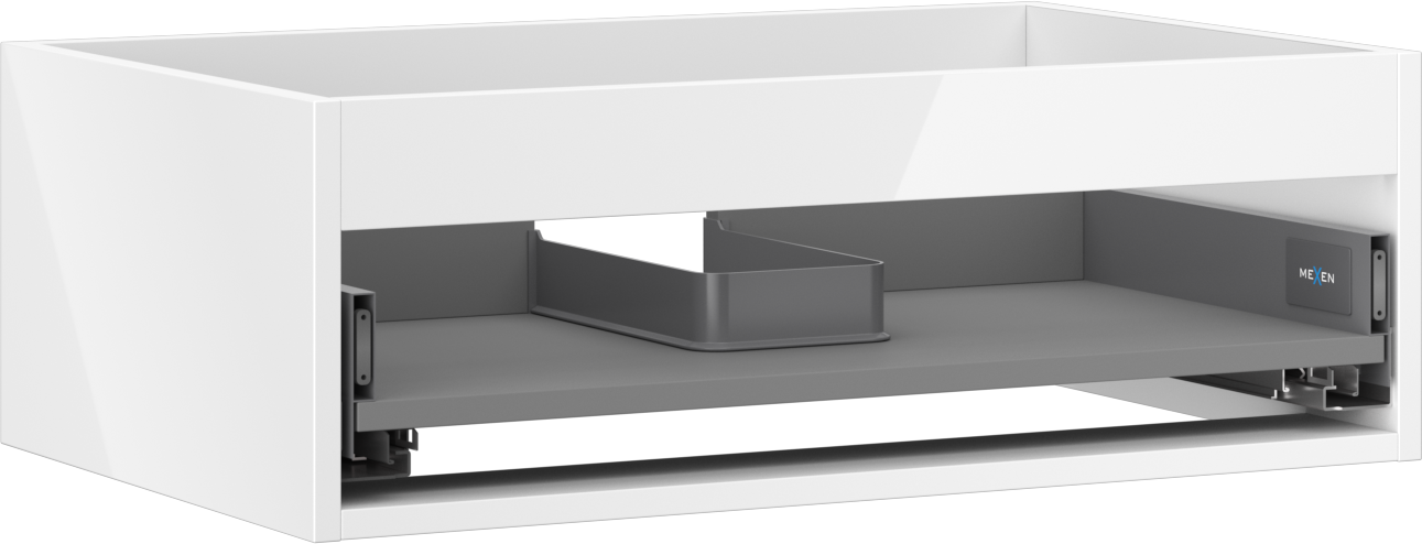 Un tiroir à sortie complète est un type de tiroir équipé d'un mécanisme permettant son extraction totale du corps du meuble. Ce mécanisme facilite l'accès au contenu du tiroir, car il n'est pas nécessaire d'atteindre les bords arrière.