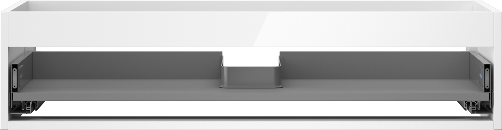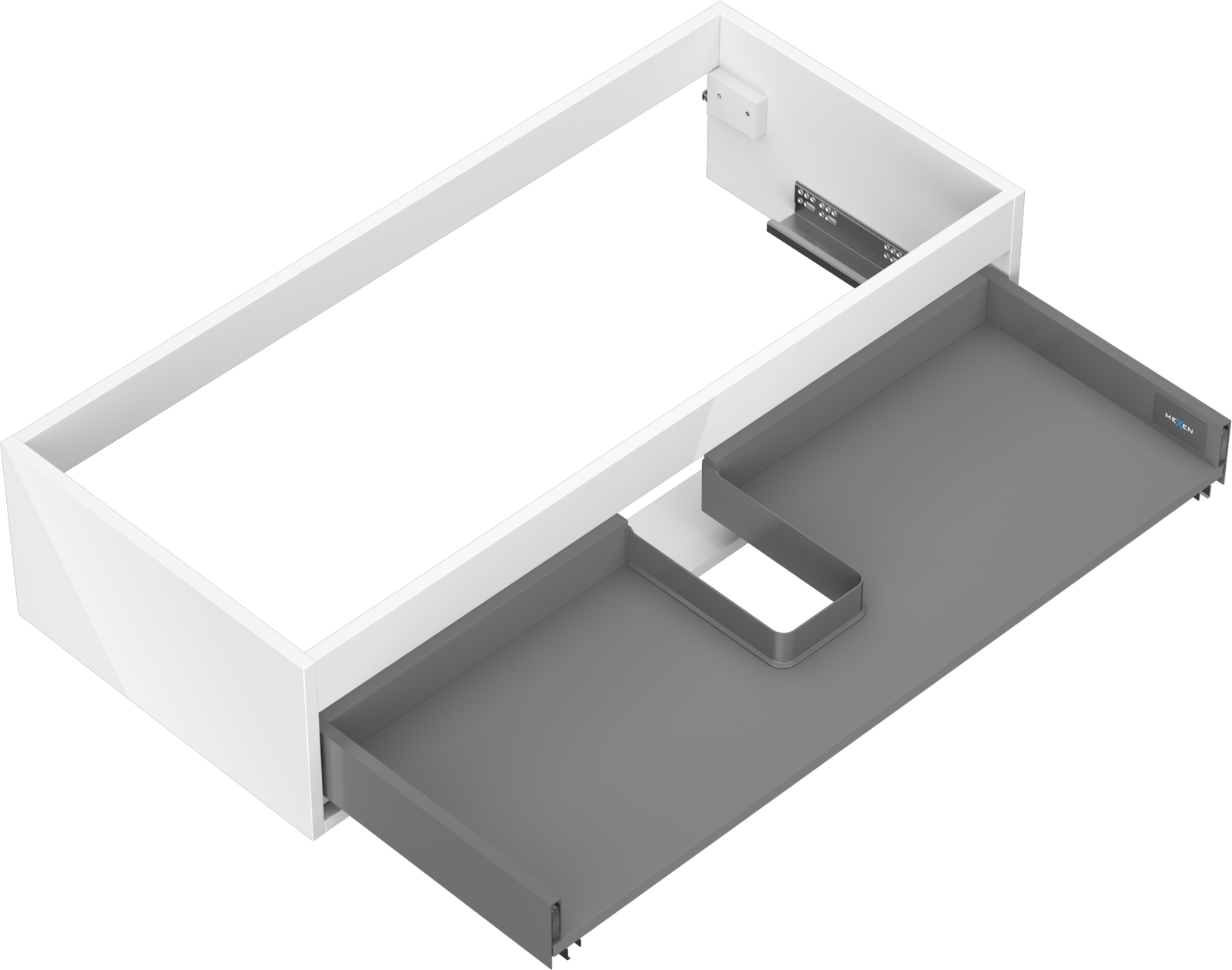 La découpe dans le tiroir est conçue de manière à accueillir le siphon, qui est nécessaire dans les installations de lavabo. Ainsi, le meuble peut être installé de manière pleinement fonctionnelle, sans devoir renoncer à l'espace du tiroir au profit de l'installation.