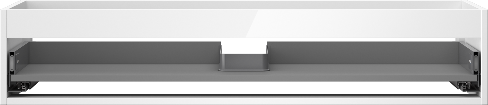 La découpe dans le tiroir est conçue de manière à accueillir le siphon, qui est nécessaire dans les installations de lavabo. Ainsi, le meuble peut être installé de manière pleinement fonctionnelle, sans devoir renoncer à l'espace du tiroir au profit de l'installation.