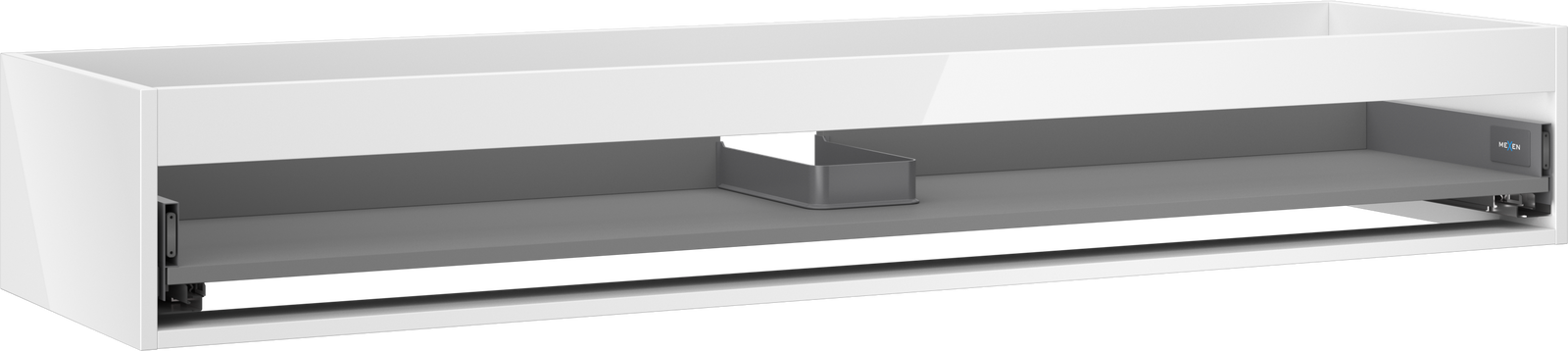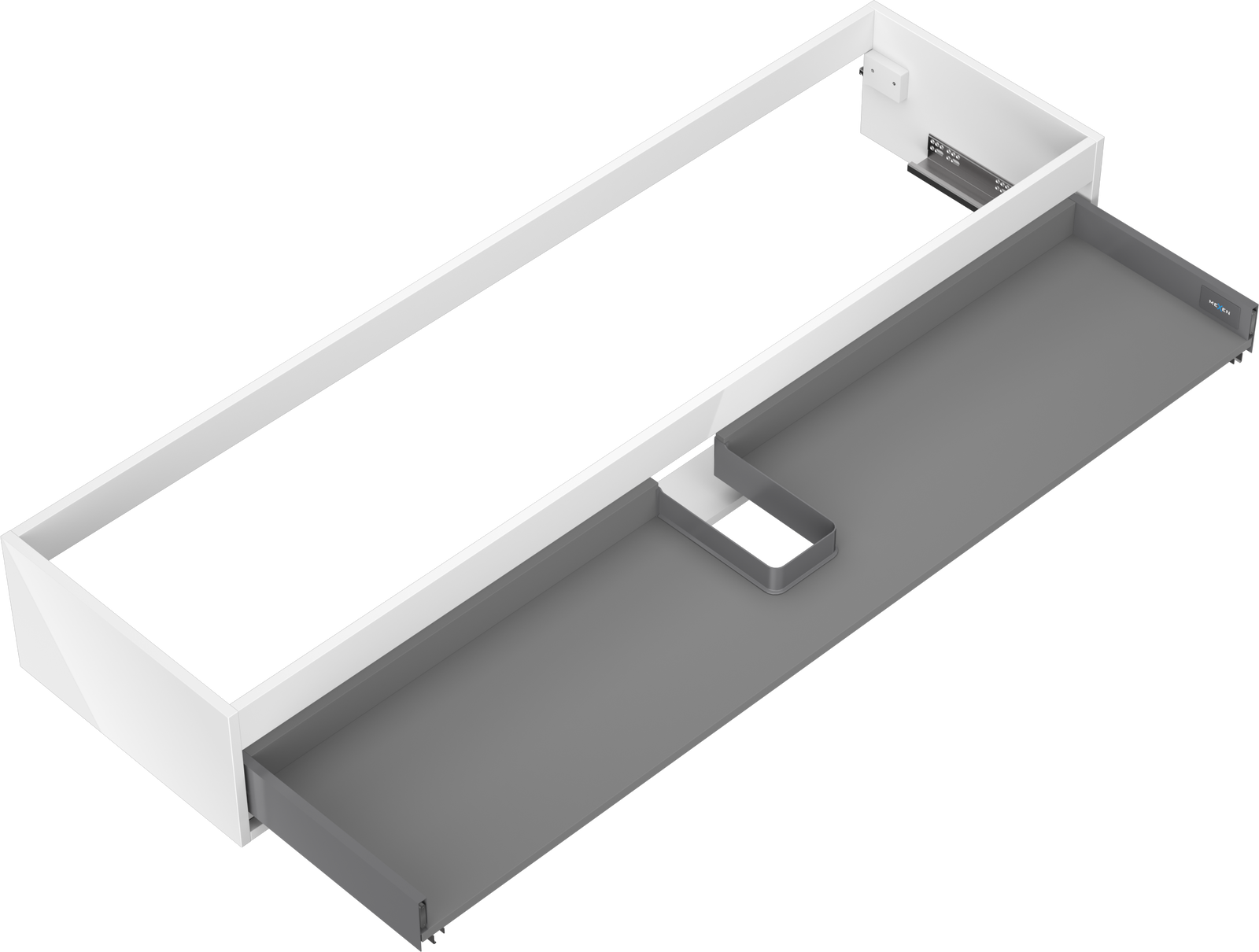 La découpe dans le tiroir est conçue de manière à accueillir le siphon, qui est nécessaire dans les installations de lavabo. Ainsi, le meuble peut être installé de manière pleinement fonctionnelle, sans devoir renoncer à l'espace du tiroir au profit de l'installation.