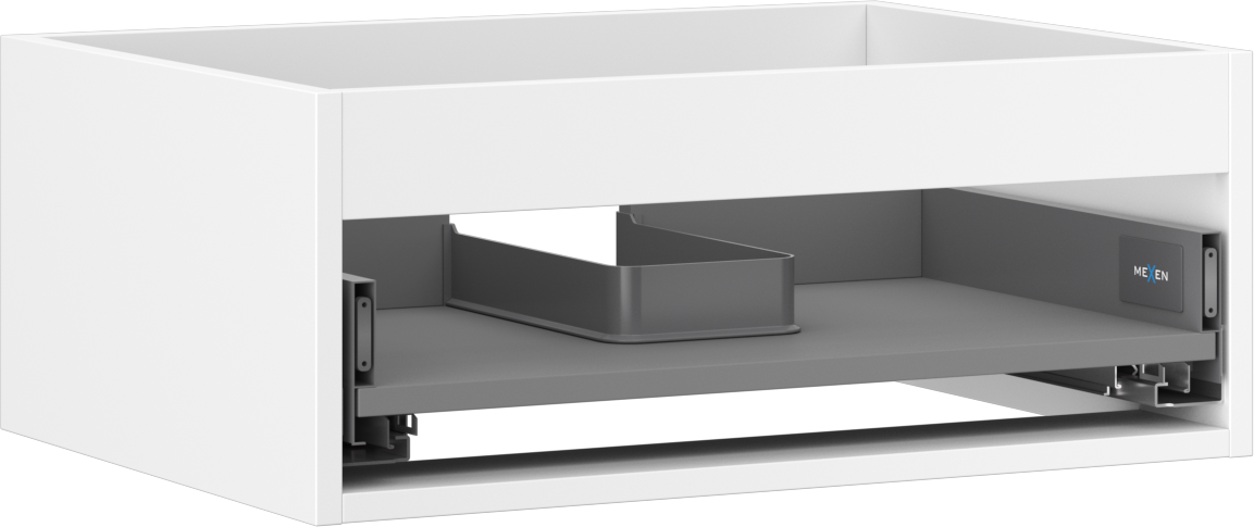 Un tiroir à sortie complète est un type de tiroir équipé d'un mécanisme permettant son extraction totale du corps du meuble. Ce mécanisme facilite l'accès au contenu du tiroir, car il n'est pas nécessaire d'atteindre les bords arrière.