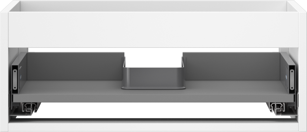 La découpe dans le tiroir est conçue de manière à accueillir le siphon, qui est nécessaire dans les installations de lavabo. Ainsi, le meuble peut être installé de manière pleinement fonctionnelle, sans devoir renoncer à l'espace du tiroir au profit de l'installation.