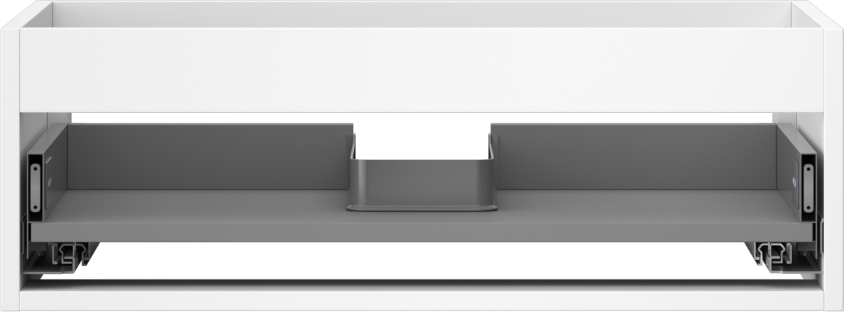 La découpe dans le tiroir est conçue de manière à accueillir le siphon, qui est nécessaire dans les installations de lavabo. Ainsi, le meuble peut être installé de manière pleinement fonctionnelle, sans devoir renoncer à l'espace du tiroir au profit de l'installation.