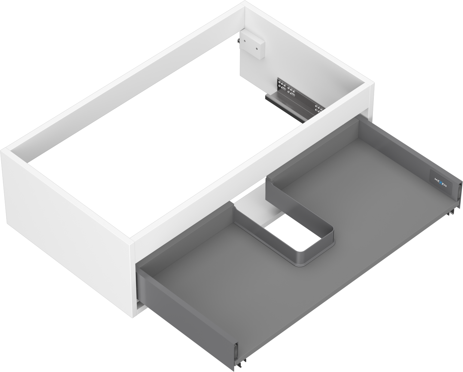 La découpe dans le tiroir est conçue de manière à accueillir le siphon, qui est nécessaire dans les installations de lavabo. Ainsi, le meuble peut être installé de manière pleinement fonctionnelle, sans devoir renoncer à l'espace du tiroir au profit de l'installation.