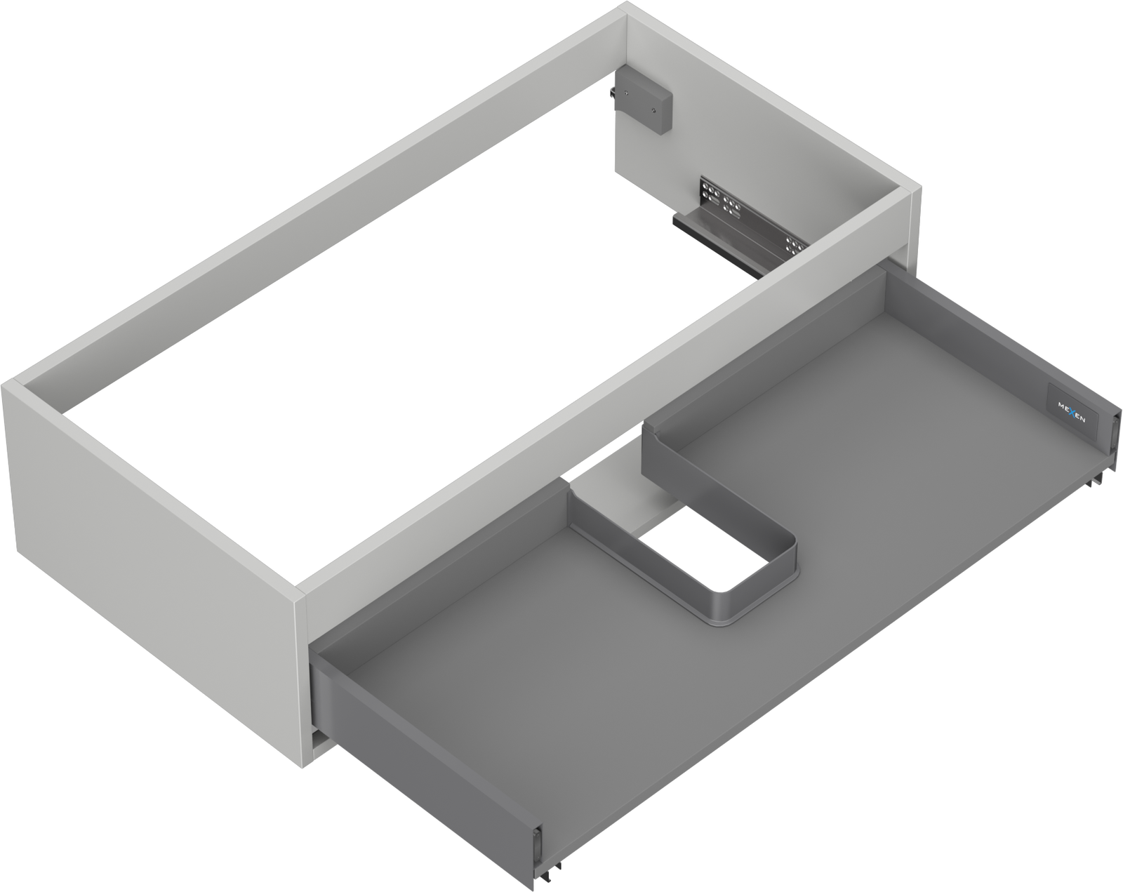 Un tiroir à sortie complète est un type de tiroir équipé d'un mécanisme permettant son extraction totale du corps du meuble. Ce mécanisme facilite l'accès au contenu du tiroir, car il n'est pas nécessaire d'atteindre les bords arrière.