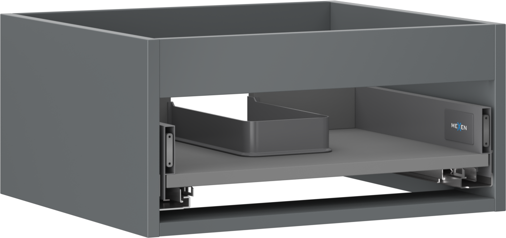 Un tiroir à sortie complète est un type de tiroir équipé d'un mécanisme permettant son extraction totale du corps du meuble. Ce mécanisme facilite l'accès au contenu du tiroir, car il n'est pas nécessaire d'atteindre les bords arrière.