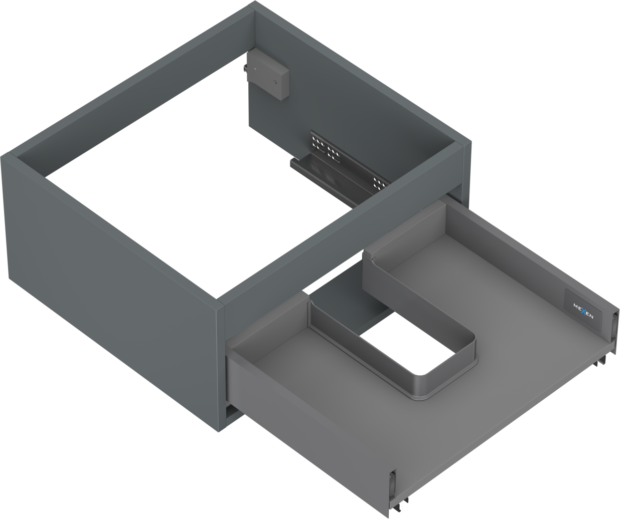 La découpe dans le tiroir est conçue de manière à accueillir le siphon, qui est nécessaire dans les installations de lavabo. Ainsi, le meuble peut être installé de manière pleinement fonctionnelle, sans devoir renoncer à l'espace du tiroir au profit de l'installation.