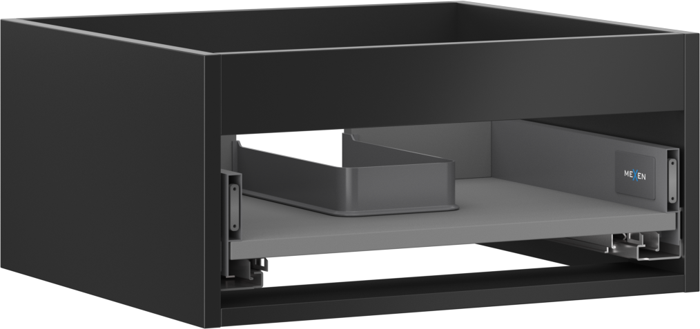 Un tiroir à sortie complète est un type de tiroir équipé d'un mécanisme permettant son extraction totale du corps du meuble. Ce mécanisme facilite l'accès au contenu du tiroir, car il n'est pas nécessaire d'atteindre les bords arrière.